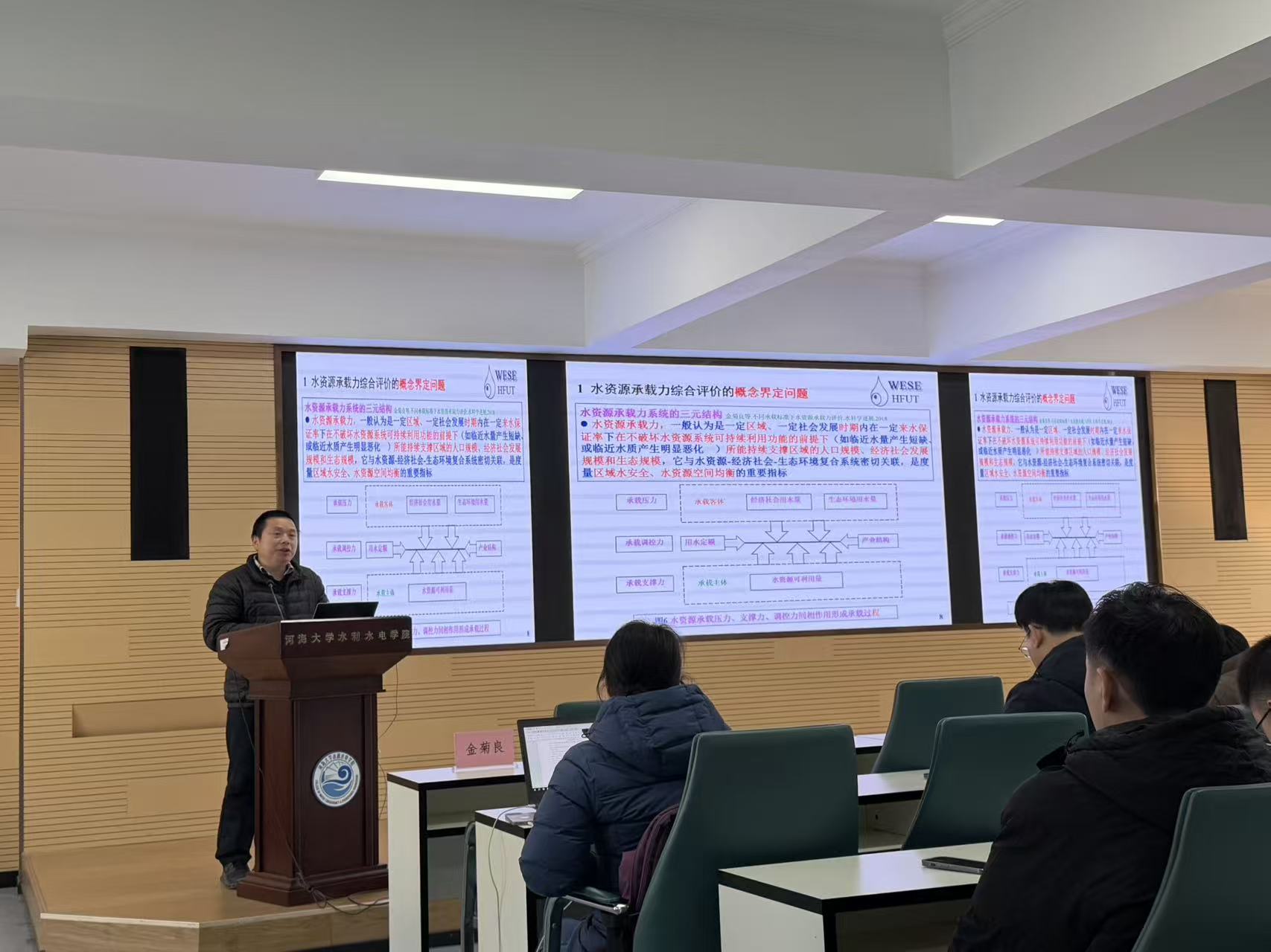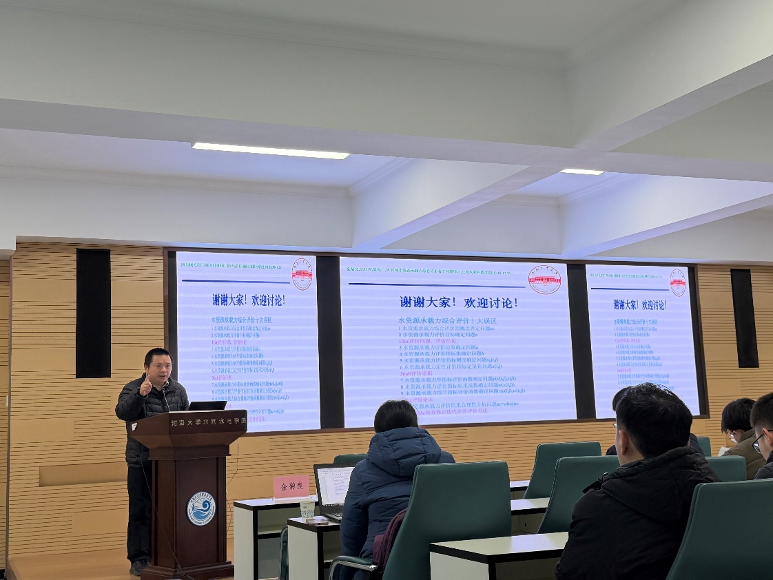 在互动交流环节,与会师生围绕评价指标体系优化、不确定性处理方法以及承载力评价在实际水资源管理中的应用等问题积极提问,金菊良教授一一作出详细解答,并就水资源系统智能建模等前沿方向与大家展开探讨,现场气氛热烈。