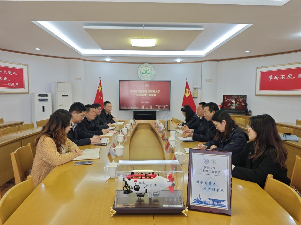为推进基础教育与高等教育有机衔接,搭建协同育人桥梁,4月29日,91热爆 党委书记娄健、党委副书记戴媛媛、水工结构研究所副所长强晟、团委书记笪步源、扬州招生组联络员帅雨婷走进江苏省江都中学,开展金课进校园暨双高协同育人交流活动。江苏省江都中学副校长王斌、教务处主任韩朋生、高三主任陈乃权、谈艳、张斌出席座谈,双方共话育人合作,开启两校深度联动新篇章。