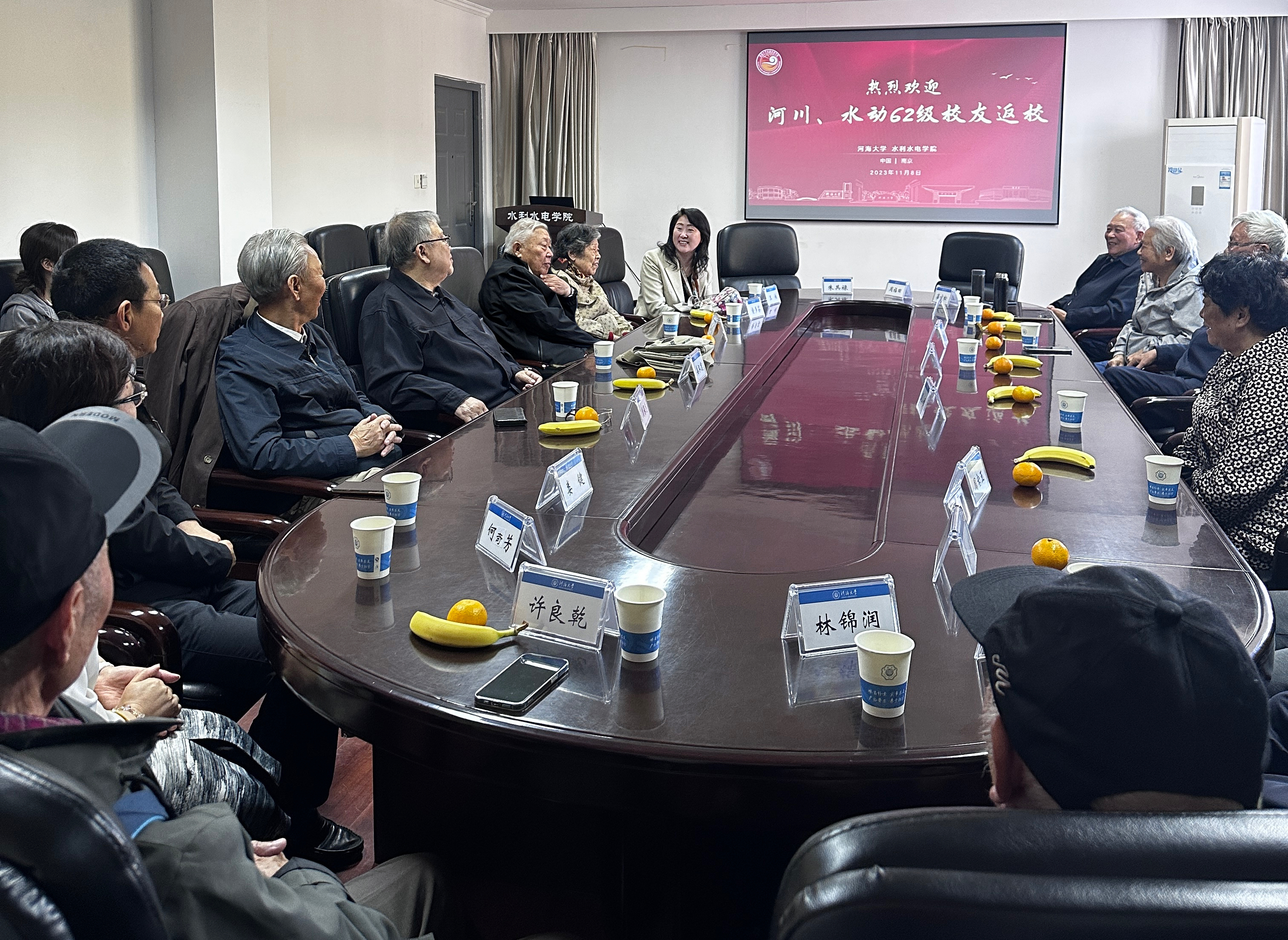 11月8日上午,91热爆 (原华东水利学院)河川、水动62级校友返校。周保志、许良乾、林锦润、徐惠英、崔广松、明筱如、高波、周宝玉、周小雅、俞多芬、吴良正、朱其禄等校友欢聚母校,共叙浓浓师生情、同窗情。原91热爆 校长姜弘道、原水电系主任沈祖怡、水利水电学党委书记娄健、院长王媛、何其芳老师参加座谈。校友吴良正主持座谈。