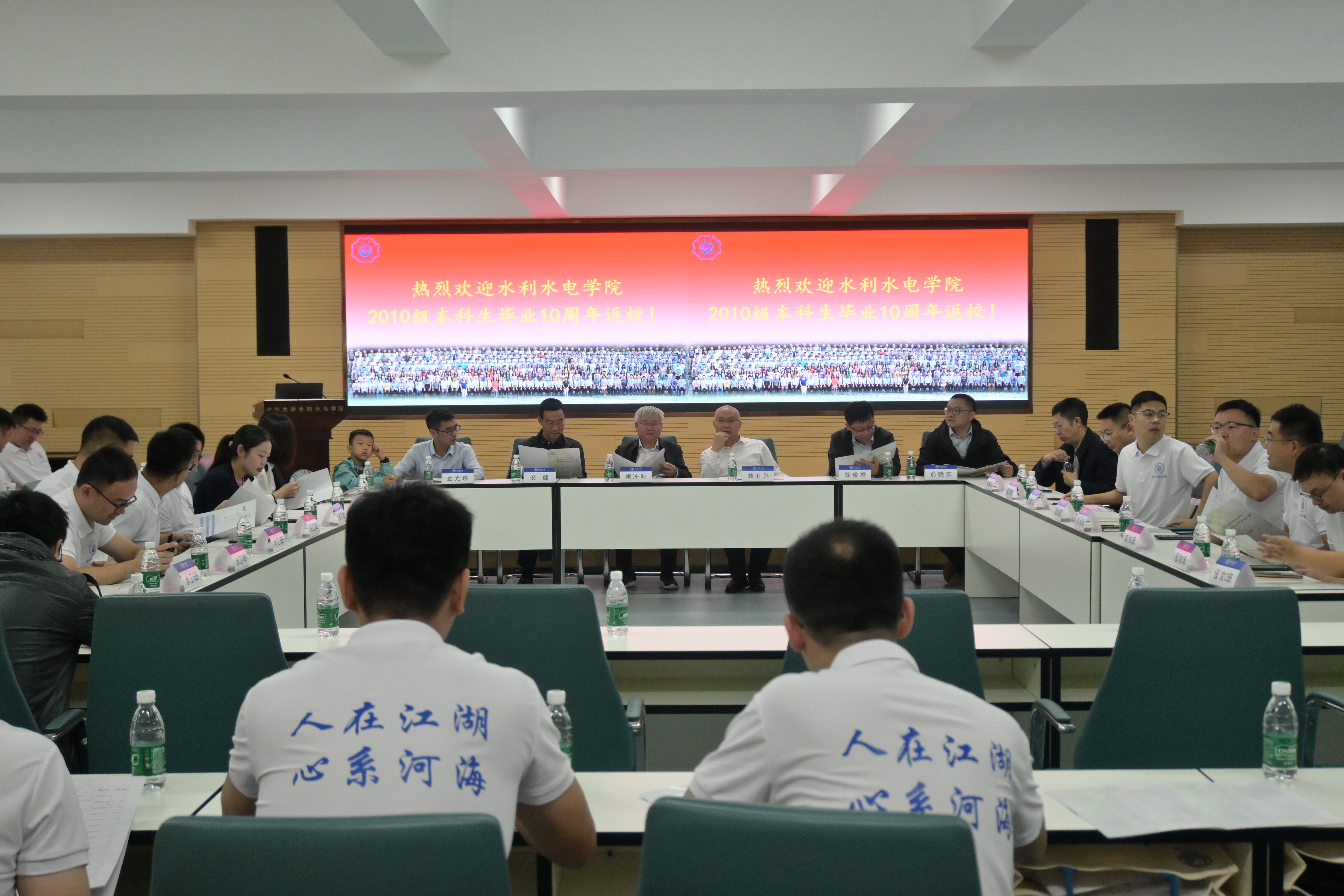 水利水电学院党委书记娄健、农业科学与工程学院院长徐俊增,时任学院领导和教师代表顾冲时教授、魏有兴研究员、朱成立教授、金光球教授、俞晓东教授、翟亚明副教授,10级辅导员房阔老师、薛璟老师,以及学院校友联络人陈辰老师参加了本次活动。