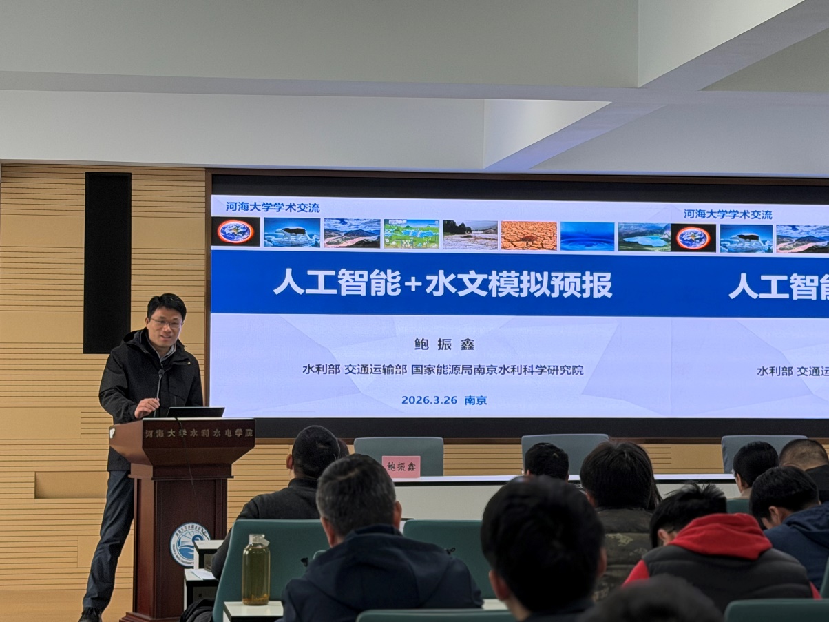 3月26日(周四)下午,水利水电学院在水电馆301会议室举办学术报告会,特邀国家“万人计划”科技创新领军人才、南京水利科学研究院水文水资源研究所总工程师鲍振鑫教授作题为“人工智能+水文模拟预报”的专题报告。报告会由方国华教授主持,学院相关方向教师和研究生共同参加。