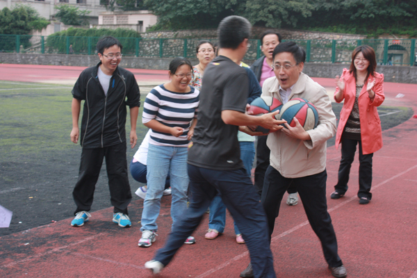 学院的趣味运动会比赛是从教工代表的广播操表演开始的,他们的动作整齐标准,给人美的享受。跳绳是年轻人和女同胞们的强项,学院两办的同事们奋勇争先,得了第一名;定点踢球爆了冷门,两办的女同事们脚下有神功,比分明显超过其他队。大家为了各自的团队能多进球,练了又练,不管谁上场,场外的都是指导教练,那个热闹气氛和看球不进的心情,真恨不能吹上一口气,助上一把力。