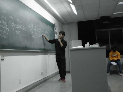 开班仪式结束后就直接进入了第一讲授课环节。整个教室坐无虚席,甚至有很多学生坐在门口和过道上听课。授课的“老师们”都是水电院12级的优秀同学,他们尽自己所能,不论是板书还是思路分析,题外拓展,都尽心尽力,以求最大限度的帮助到大一新生。为解决个别同学的疑难问题,乐水学堂特地开设了课间单独提问环节。在最后一轮的授课结束后,全场掌声雷动。