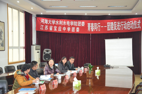 2013年12月4日,水电院团委与江苏省宝应中学团委共同开展“青春同行——高校对口中学团建促进行动”启动仪式。活动旨在响应团省委号召,进一步贯彻落实全国中学共青团会议精神,统筹全省学校战线团建工作,深入探索一体化分层教育。