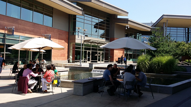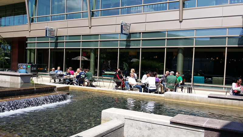 到了西雅图就该去看看微软、波音、谷歌这些知名的大公司。在微软工作的熟人带领,我们来到微软的陈列室,看完陈列室,赶上午餐时间,有幸在微软的餐厅吃了顿午餐,当然是自己付费了。微软餐厅挺大,我们进的这边是印度风味和墨西哥风味的餐厅,陪伴我们的事墨西哥的小伙子,我们选择了墨西哥风味的餐厅。餐厅里,不光可以吃饭,还有配眼镜的商店、修电脑的店、理发店、小型的超市,微软人在午餐时间还可以选择去理发、配眼镜、修电脑,感觉很人性化。