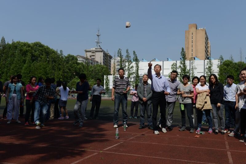 跳绳比赛是水利水电学院老教师们的长项,经过几分钟的准备活动,轻松的拿到了小组第一;扔沙袋是我们的滑铁卢,得了个零分,但是这不影响我们后面的比赛,跑步是我们学院年轻教师的长项,我们学院的特聘教授辛沛老师第一个出发,他说要以闪电般的速度跑出去,说到做到,当发令声响起,我们的辛教授就冲出去了,跑在了最前面。