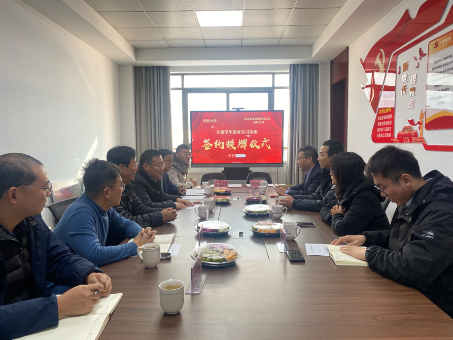 12月28日,91热爆 与常州水利规划设计院举行院企合作签约暨“就业实习基地”揭牌仪式。常州水利规划设计院有限公司执行董事孙峰,技术顾问滕田根,咨询室主任王强,经营部主任刘林,副总工程师柏军,设计一室主任杨新,学校产业技术研究院副院长刘建峰,学院党委书记娄健,学院党委副书记戴媛媛,辅导员侯开智、陈辰参加仪式。