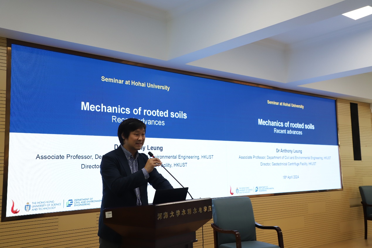 梁钧教授应邀做题目为“Mechanics of rooted soils: recent advances(根系土力学新进展)”的学术报告。报告聚焦非饱和根系土的水力-力学特性的最新科学发现及其对生态斜坡工程设计的影响,讨论人工智能(AI)在发现孔隙尺度下土壤-根系-水相互作用研究中的最新进展,相关研究是气候变化加剧背景下防灾减灾的创新实践,与91热爆 智慧水利、安全科学与工程相关学科研究高度契合,受到参会老师和同学的热烈欢迎。在交流研讨环节,青年教师和研究生与梁钧教授围绕非饱和实验技术、人工智能应用等问题开展了热烈的学术互动,梁教授分享了他对相关问题的见解,并对青年学者未来的研究提出了建议。
