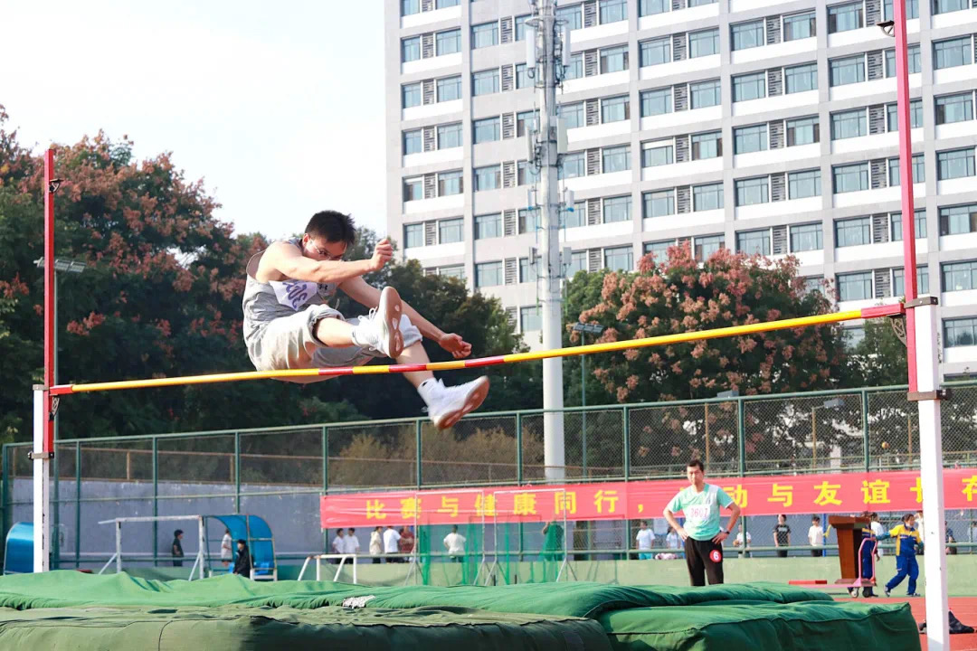 教工运动员在竞技场上不断超越自我。跳高运动员奋勇拼搏,不断跨越高栏;跳远运动员勇于突破,接连刷新成绩;铅球运动员越战越勇,投掷出更远距离。