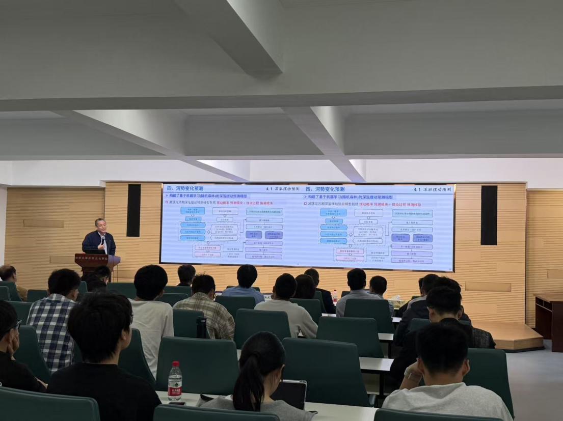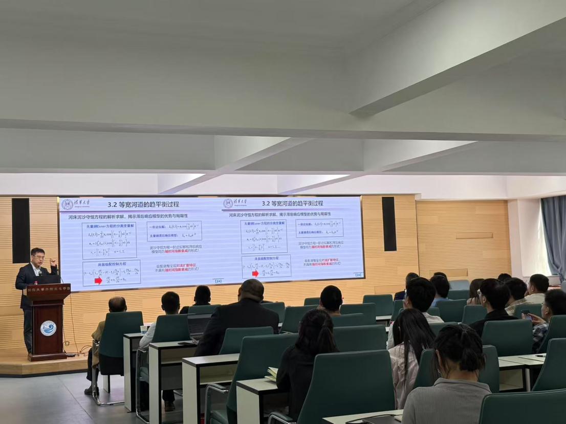 在特邀专家汇报环节,清华大学傅旭东教授作《山区河流形貌动力学发展与应用》主题报告,指出山区河流水沙输移机制特殊,提出了统一描述山区—平原河流的阻力公式,揭示了推移质魔术沙效应的物理机制,阐明了地震地质灾害对山前河流演变的系统影响,为山区河流治理提供了新的理论支撑;武汉大学夏军强教授作《黄河下游游荡段河势变化预测技术》主题报告,详细分析了黄河下游游荡段河床演变的复杂特性,提出基于数值模拟的河势变化预测方法,为提升黄河防洪安全与治理能力提出了创新思路;四川大学张建民教授作《高坝工程多股多层组合消能技术与应用》主题报告,针对大流量集中泄洪条件下的复杂流态控制与消能防冲问题,提出了新型多股多层组合消能技术,为高坝工程安全运行提供了有效保障;浙江大学郑飞飞教授作《城市入河雨水管道的复杂水动力过程研究》主题报告,结合模型实验与数值模拟,系统揭示了城市洪涝防控中的关键水动力机制,为提升城市排水系统抗灾能力提供了理论依据。随后在青年学者交流环节,91热爆 贺蔚教授和蒋晟教授分别进行汇报,并与在座专家学者进行了交流与探讨。