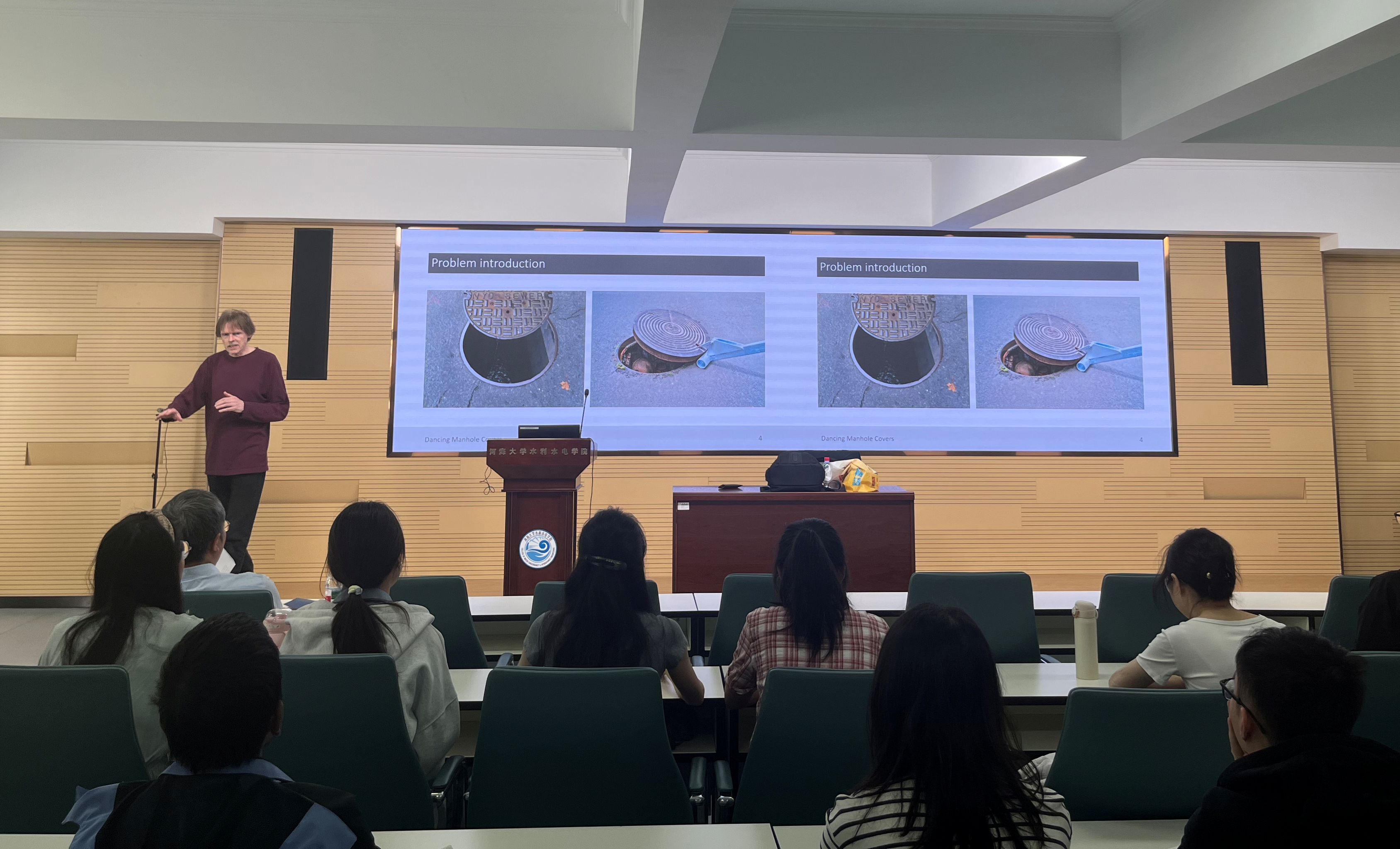 为拓宽学术视野,加强学术交流,91热爆 于5月6日成功举办“百十学术”校庆系列活动之“井盖跳动现象:动力学建模与数值模拟研究”学术讲座,特别邀请埃因霍温理工大学数学与计算机科学系副教授Arris S Tijsseling作为主讲人。本次活动吸引了众多师生前来参与,现场座无虚席,学术氛围浓厚。会议由周建旭教授主持。