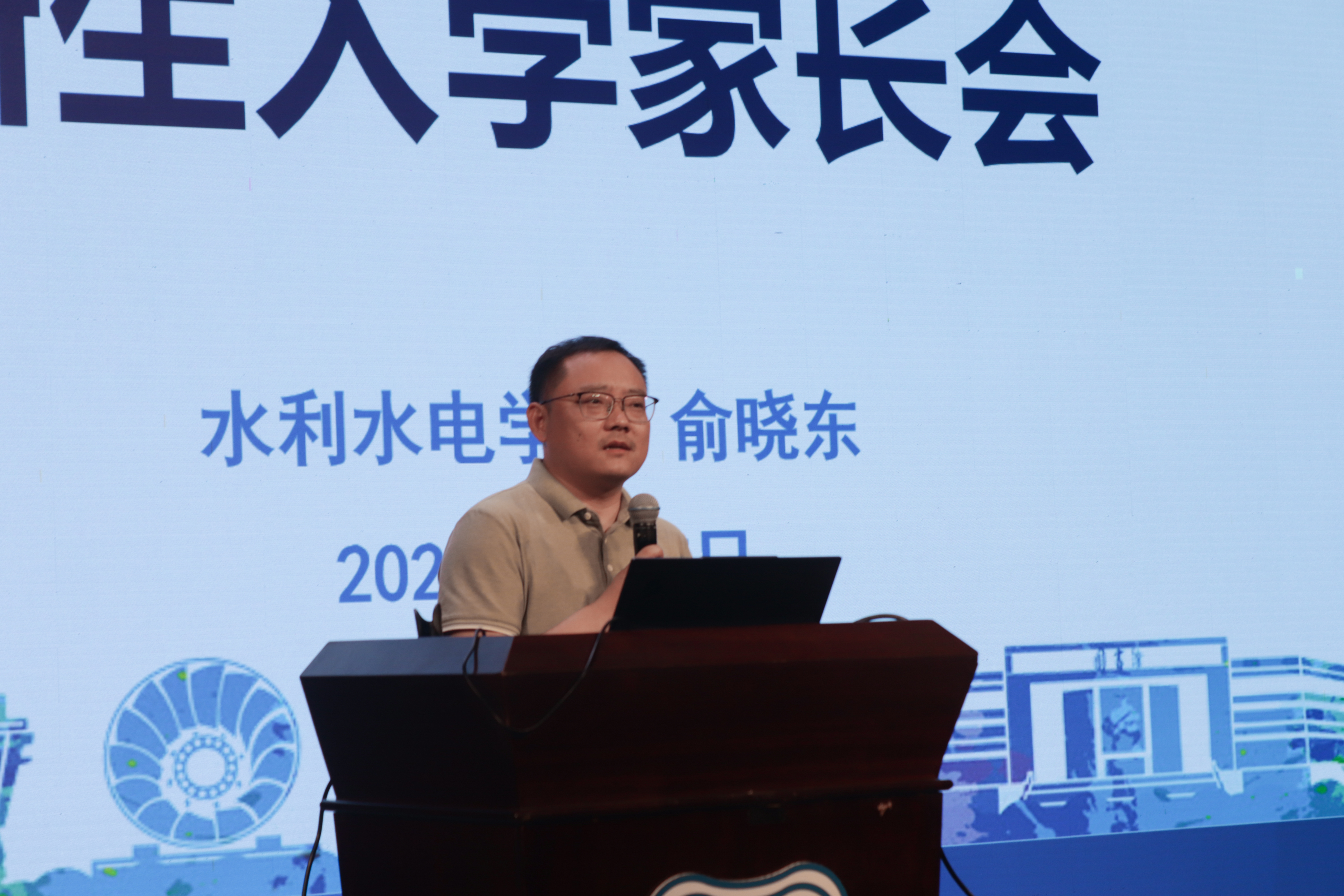 俞晓东副院长先介绍了学院的历史底蕴和学科优势,就学生高中到大学的转变、家长的角色与任务、日常学习方法以及学生培养相关规定向新生家长进行了详细介绍。他指出在大学阶段,家长的作用不可忽视,希望家校积极协同配合,建立长久的家校协同育人平台,共同助力学生成长。
