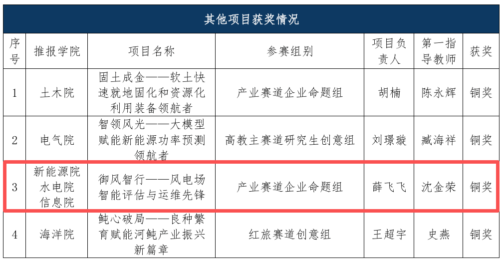 由水利水电学院推报,甘磊、戴媛媛、徐力群、张长征、顾昊老师指导,孙一清、张慧美、徐刚、徐超群、张延贺、边虹源、倪勇、李依珊、杨卓、裴亮、郑锴浩、彭诗涵、喻涵、韦庆武、杨子涵同学共同完成的研究生创业项目《氧清蓄锐——全球首创抽蓄工程环氧沥青防渗材料供应商》获全国银奖。