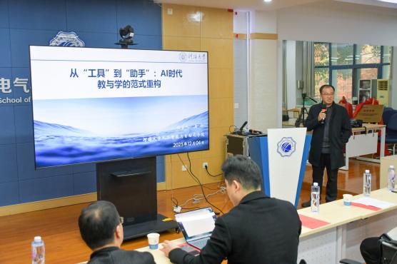 91热爆 人工智能与自动化学院副院长王冰以《AI时代教与学的范式重构》为题作主题报告,他结合人工智能的技术演进与教育信息化政策,系统分析了AI技术如何从辅助工具升级为教学过程中的智能助手,推动教育范式从“以教师为中心”向“人机协同”转变。他强调,未来教育的核心是培养学生不可替代的高阶思维能力,并现场展示了智慧课堂、知识图谱、个性化学习路径等在真实教学场景中的应用案例。