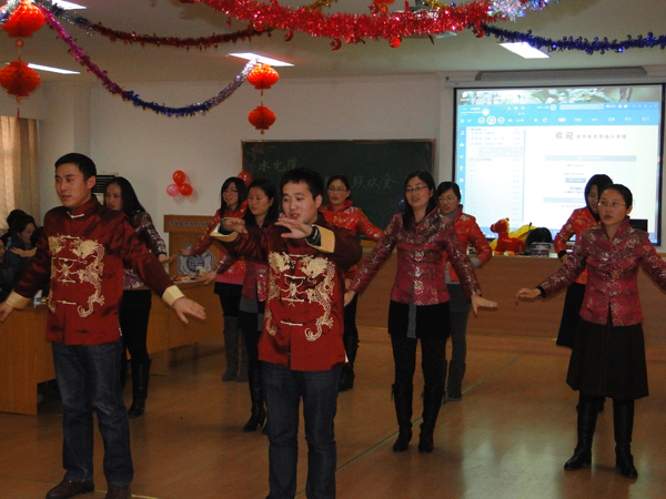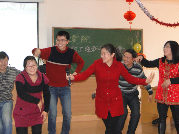 一首热情洋溢的开场舞“卓玛”拉开了联欢会的序幕。张书记宣布联欢会正式开始,顾院长总结了2013年学院取得的成绩。接下来是学院各教工支部表演节目,水工支部表演的“三句半”,诙谐幽默,很快带动现场一片笑声;水利水电支部表演的手风琴伴奏合唱、水力学支部的合唱“当”以及农水支部的男女六重唱“青春的小鸟”让很多人都忍不住跟着唱了起来;两办支部的手语歌“生命之河”,更是将联欢会推向了一个小高潮。节目中间还穿插了很多有趣的小游戏,充分调动了大家参与的积极性,组成好友档、夫妻档等各类组合,热热闹闹过了一把游戏瘾,掀起了联欢会的一个个小高潮,最令大家惊喜的是,张书记抢答歌名,还为大家即兴演唱了一首“小白杨”,成为全场的一大亮点。