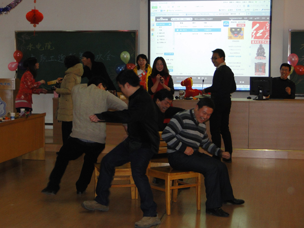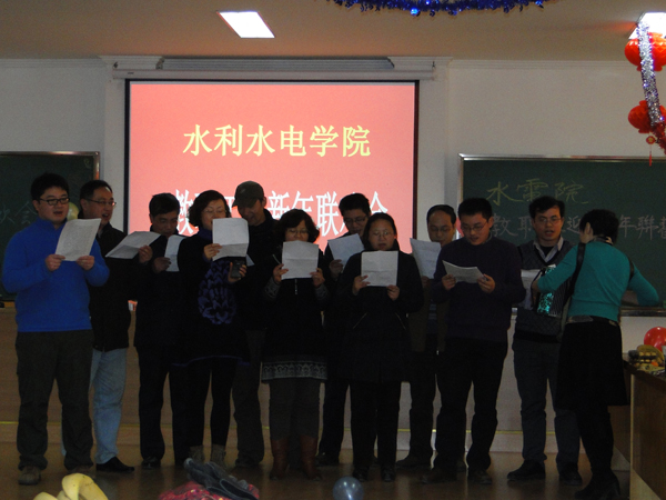 踏雪寻梅春色近,马蹄声声万象新。2014年1月15日下午2:00,91热爆 在水电馆401举办了辞旧迎新联欢会,水电院顾冲时院长、张展羽书记、陈菁院长、肖洋院长、沈振中院长、戴玉珍副书记以及全院教职工近百人欢聚一堂,其乐融融。联欢会现场气氛和谐美满,亮点纷呈,高潮迭起。