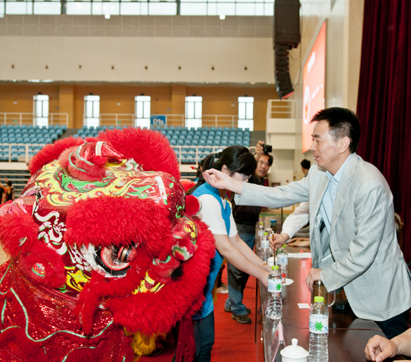 党委副书记王济干、同曦集团董事长陈广给沉睡的祥狮点下尊贵的一笔。舞狮点睛和画龙点睛是一个意思,象征给予生命。