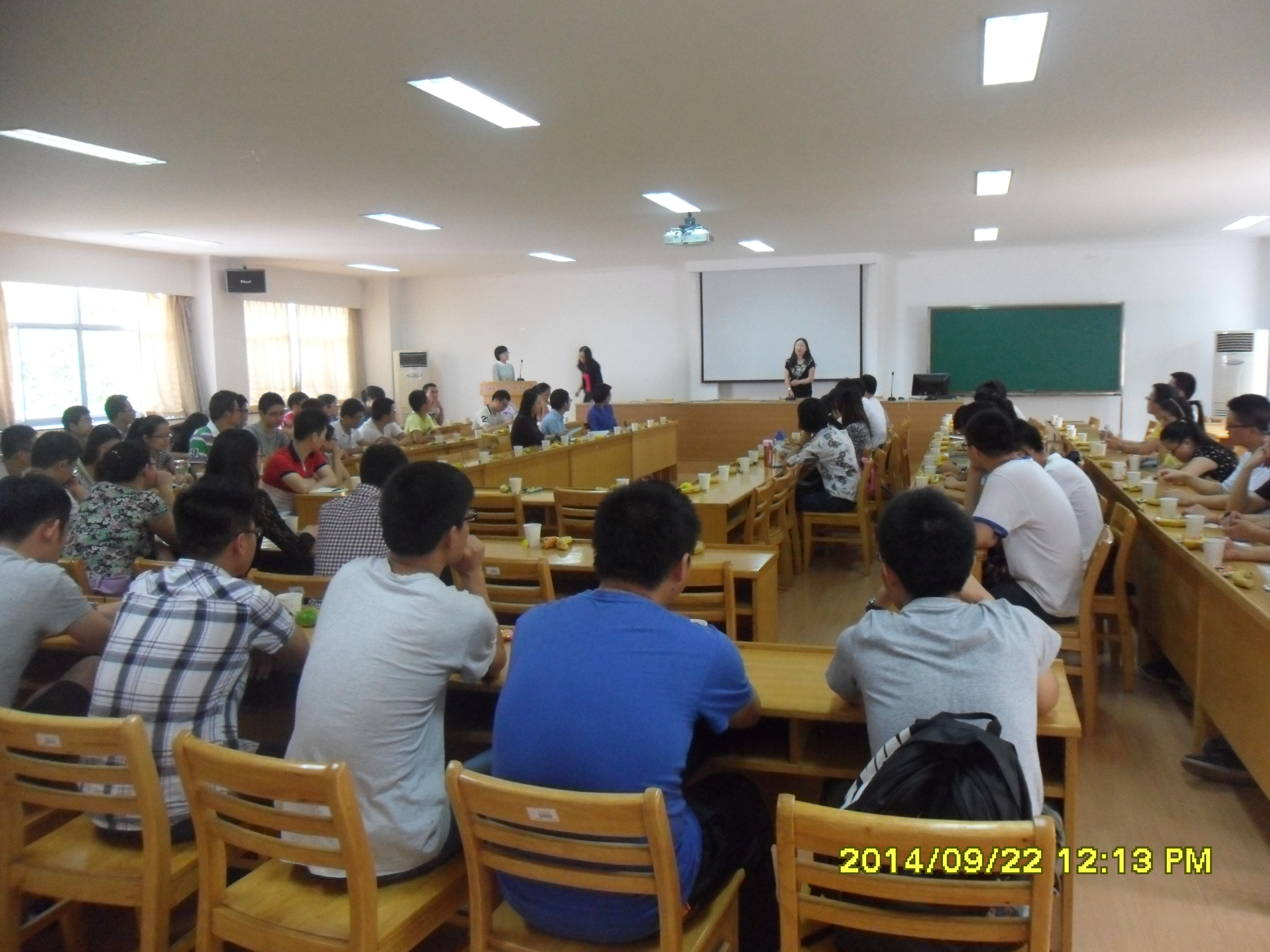 2014922日星期一中午12302014年度水利水电学院研究生干部茶话会在水电馆401隆重举行。出席此次茶话会的有,水利水电学院党委戴玉珍副书记,水利水电学院研究生辅导员赵志涵老师,水利水电学院研究生组织员胡瑞媛老师,水利水电学院研究生教学秘书周昶老师,水利水电学院研究生会主席宋锦焘同学、研究生科协主席钟黎雨同学,水电院第十二届研究生会和第三届研究生科协的全体成员。各级博士、硕士班长、党支部书记也参加了这次大会。
