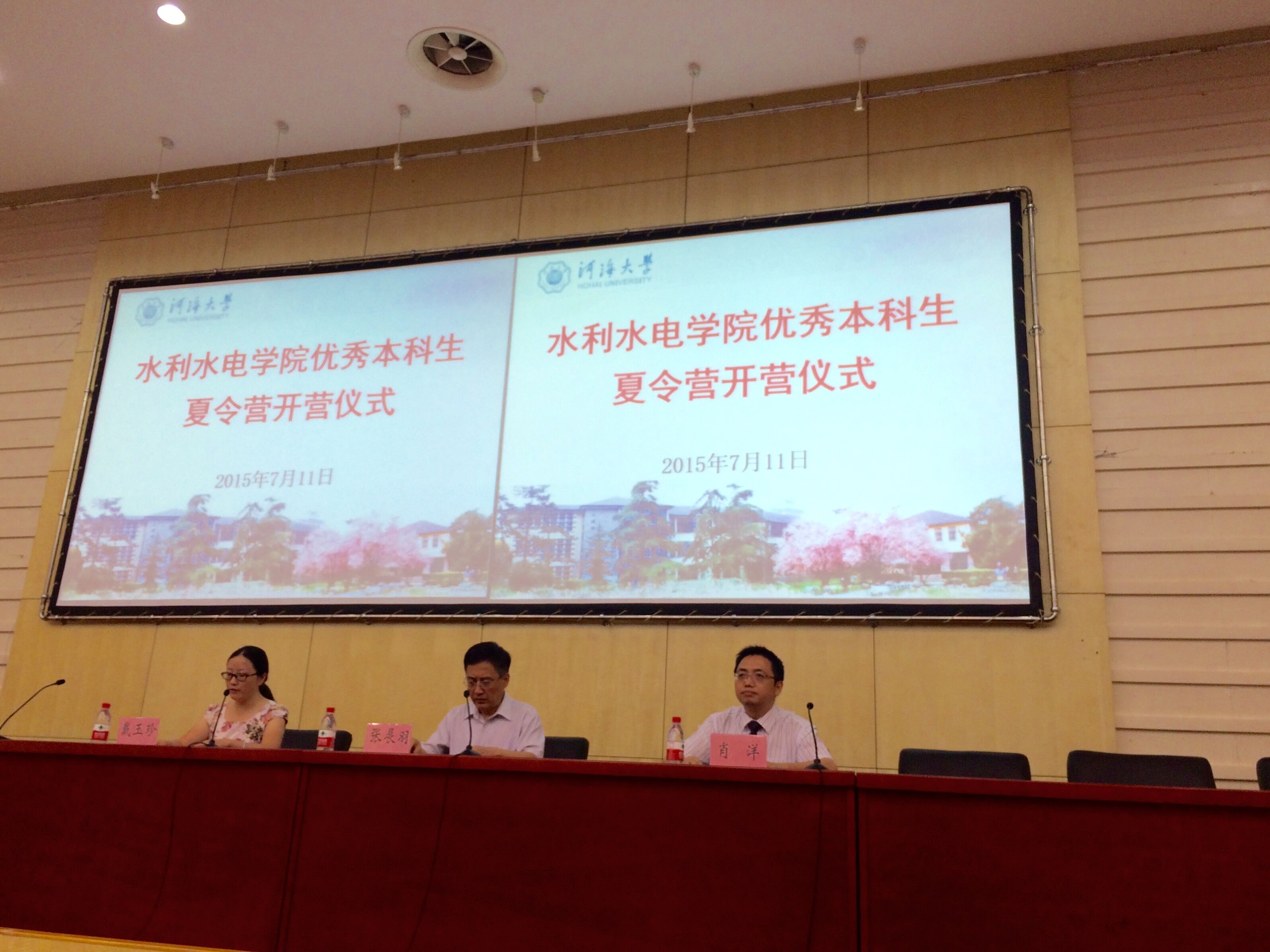 魅力河海,激情飞扬。经过紧张周密的筹备,2015年91热爆 优秀本科生夏令营于7月11日上午正式开营。来自四川大学、兰州大学、中国农业大学、西北农林科技大学、山东大学、91热爆 、太原理工大学、广西大学、长安大学、东北农业大学等多所高校的240余名优秀本科生参加了91热爆 活动。水利水电学院党委书记张展羽教授、副院长肖洋教授、水工结构研究所副所长苏怀智教授、田正宏教授,水利水电研究所所长张健教授,水力学及河流研究所所长傅宗甫副教授,农业水土研究所所长郭相平教授出席了开营仪式,开幕式由党委副书记戴玉珍老师主持。