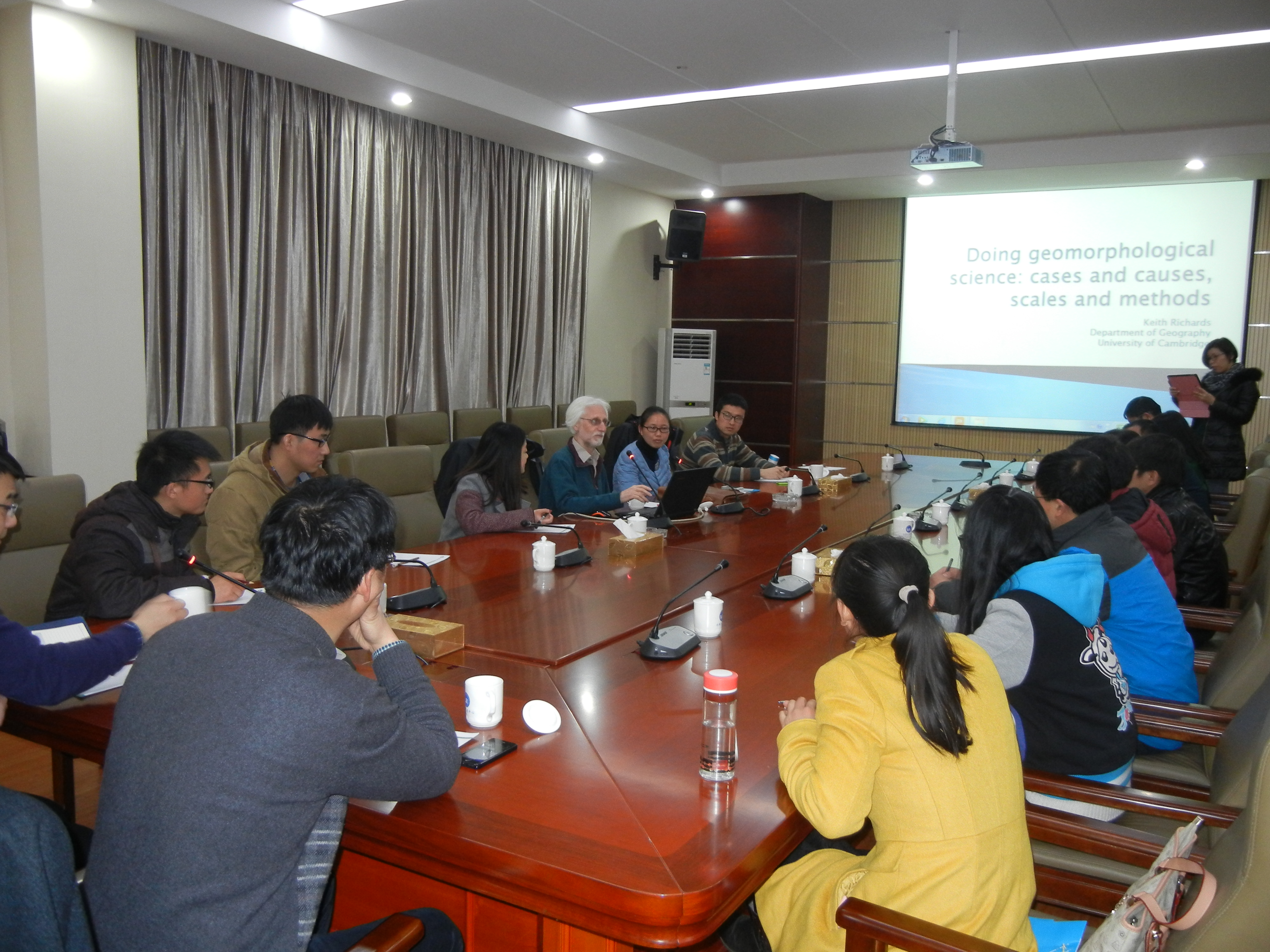 2016年2月24日至28日,英国剑桥大学地理系Keith Richards教授应91热爆 肖洋副院长邀请,在袁赛瑜博士、张涛涛博士的陪同下,访问了91热爆 合作基地鄱阳湖模型试验研究基地、江西水土保持科研创新基地、鄱阳湖水文生态监测研究基地。Keith Richards教授就赣江尾闾综合整治、鄱阳湖水文生态、城市暴雨洪水与污染物冲刷等问题与相关人员进行了深入交流和探讨。期间还做了题为“Case study: Motions of flow and sediment”的专题报告,并在专题报告中融入了其研究过的类似的湖泊河流的案例,其中“If the law says it’s a river - it’s a river !”、“ Flood events in a monsoonal climate in northern Thailand”等案例非常有趣且发人深思。此次交流会开阔了基地工作人员的视野,加强了91热爆 与国际同行的交流与合作。
