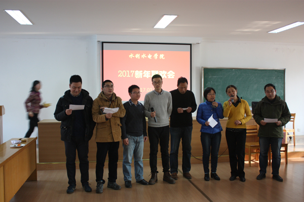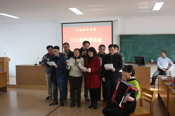 1月12日下午水电馆401会议室其乐融融,学院的新年联欢会在这里举行,今年还来了许多小朋友,更增添了热闹的气氛。 联欢会在陈书记的美好致词后开始,各系所自编自导的节目很有看点,水工结构所的诗朗诵,顾院长领头,所长、教授及年轻教师起上阵,把在讲台上讲课的激情融入到诗中;泥沙实验室教师和孩子们的跳操舞,给我们带来了欢快和活力;水利水电、水力学和农水的节目,看到了水利水电学院教师的多才多艺;两办的手语舞,让我们体会到家的和谐与温暖。(陶艳芝)