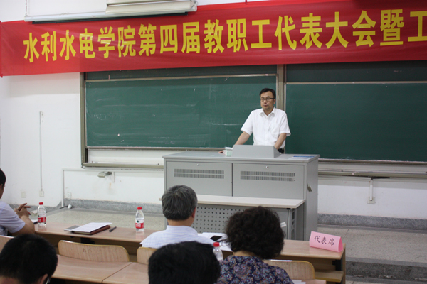 经过2个多月的筹备,水利水电学院第四届教代会暨工会会员代表大会5月18日下午在闻天馆303教室召开,会议由学院副书记戴玉珍主持,会议在国歌声中开始,校工会主席陈杰出席了会议并在会上宣读了水利水电学院召开第四届教代会暨工会会员代表大的批复,预祝大会圆满成功,水利水电学院书记陈毓陵致辞,院长顾冲时做学院工作报告,上一届学院工会主席陶艳芝做工会工作报告。之后就推荐的教代会和工会候选人委员进行了等额选举,通过了教代会和工会候选人委员名单。(供稿人:陶艳芝)