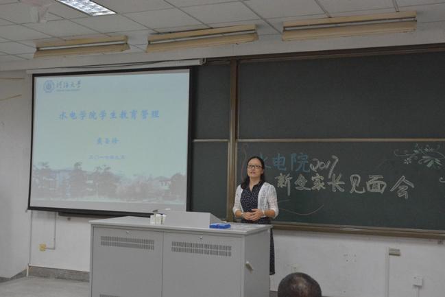 本科生教育教学的相关制度和人才培养管理模式。她指出,大学生活已经开始,梦想在这里发芽,希望家校合作、齐心协力,努力把水电院的同学们培养成为家庭依靠、学校骄傲、社会需要的优秀人才。