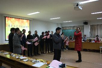 200主持人宣布联欢会开始并邀请学院书记陈毓陵致辞。第一个节目学院两办的年轻人给大家的河海校歌,边歌边舞让人耳目一新,接着是水工结构研究所的合唱“打靶归来”,一首简单的老歌,唱出了另样的风格,还有水利水电研究所的合唱“康定情歌”,水力学及泥沙研究所的合唱“我和我的祖国”,老师孩子们的舞蹈,孩童的纯真,给人从内心的喜悦。联欢会穿插了十九大报告的知识竞猜,大家踊跃答题,说明大家对十九大报告的内容熟悉了解。你说我猜的小游戏,出场的夫妻组合、院长组合配合都十分默契,都在规定的时间猜对了词语,让人捧腹欢笑。联欢会在清脆的童声独唱和办公室主任的男生独唱中结束