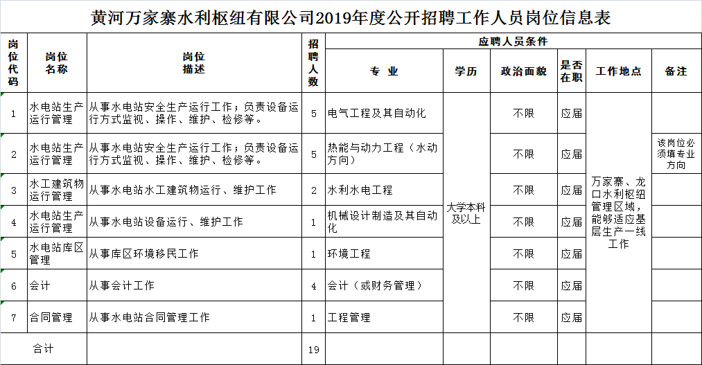 【招聘公告】黄河万家寨水利枢纽有限公司(12.4)