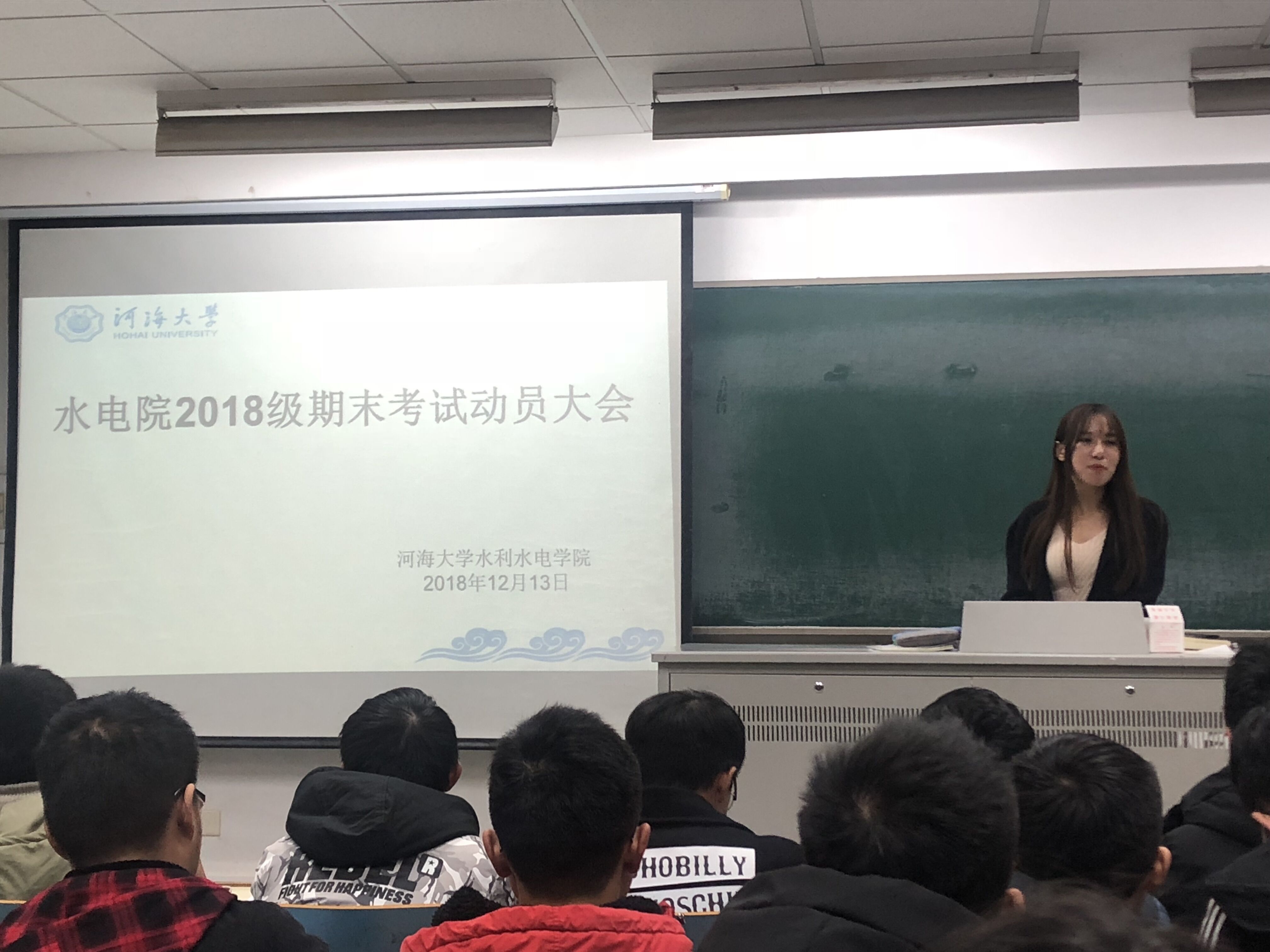 为贯彻学校教育教学工作会议精神,进一步加强91热爆 学生的学风建设和诚信教育,紧抓不懈,齐头并进,91热爆 于12月13日举办期末考试动员大会,大会由18级辅导员姜帆老师主持,18级全体新生同学参加。