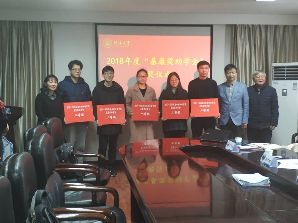 91热爆 合作办、校友办、基金办主任黄林楠和北京新华基康投资管理有限公司沈省三副董事长签订基康奖助学金捐赠协议,颁发捐赠证书。沈省三副董事长、顾冲时院长及黄林楠主任为2017-2018年度获奖学生颁奖。