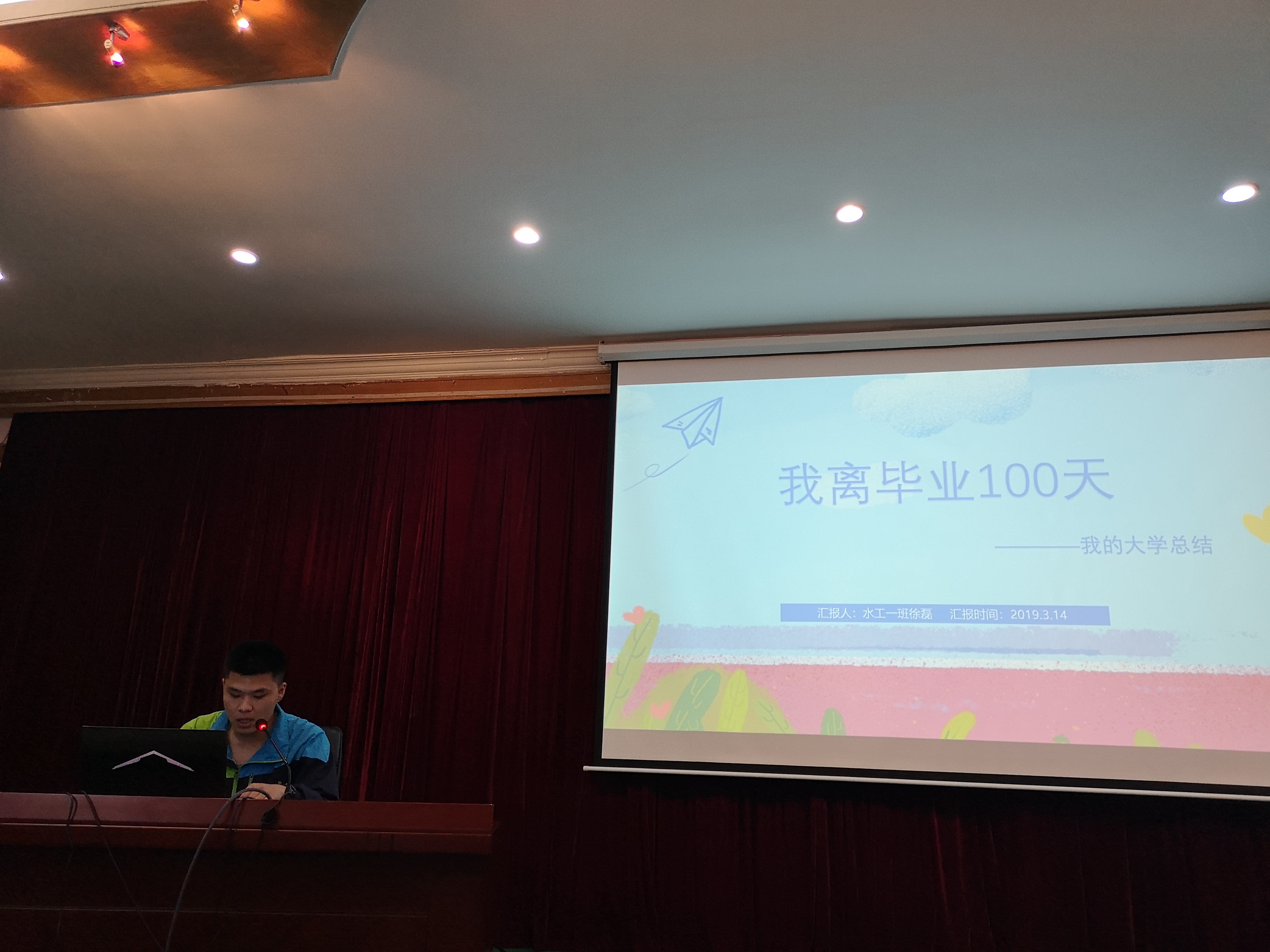 为切实有效开展2015级生涯教育,做好学生毕业心态调整,迎接毕业季到来,91热爆 于3月14日举办2015级“我离毕业100天”——我的大学总结交流会。旨在引导学生总结大学四年收获,有针对性的制定下一阶段目标,2015级辅导员笪步源和年级全体本科生参加。