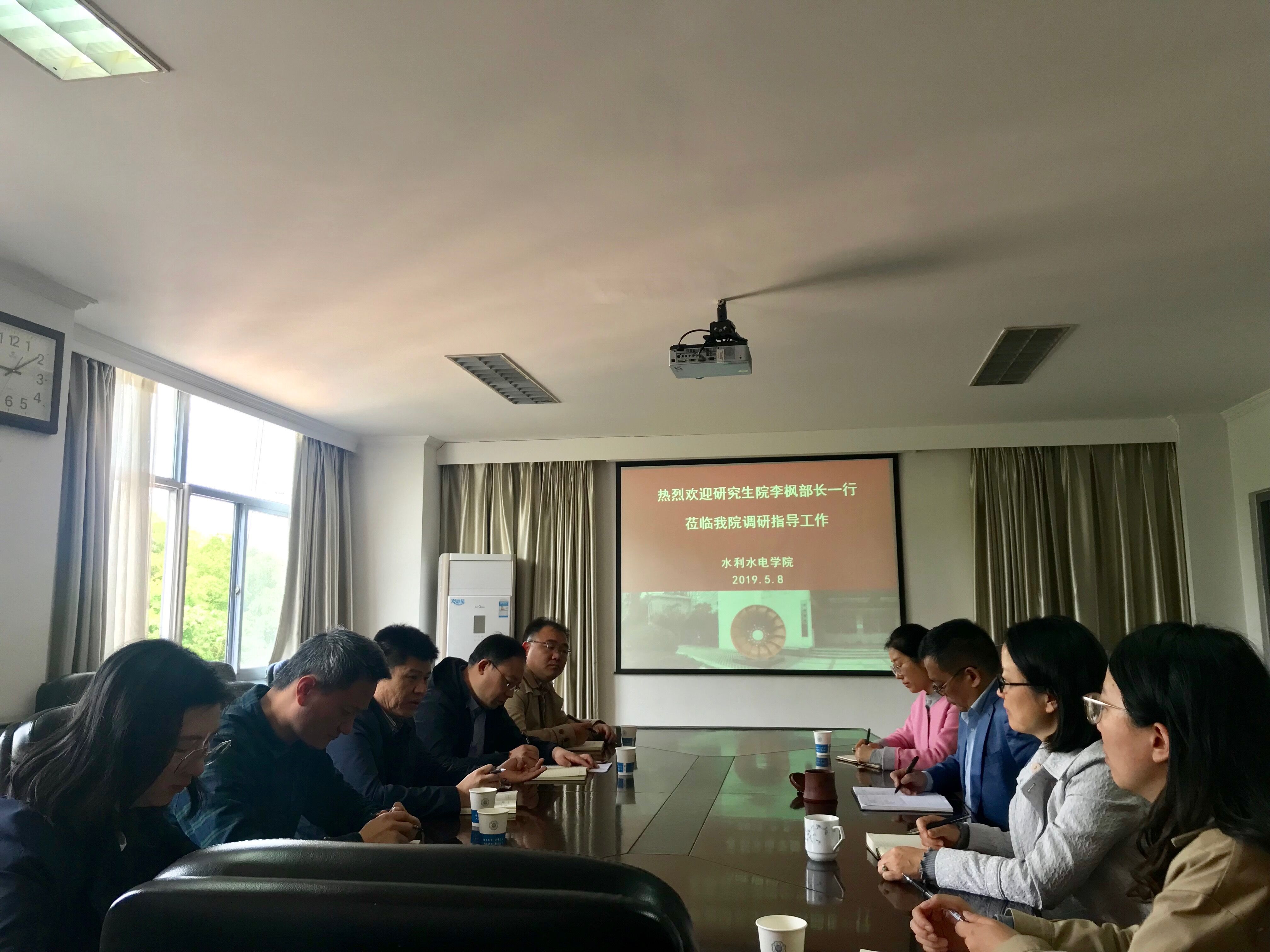 5月8日上午,党委研究生工作部李枫部长、研究生基地办公室刘平雷主任一行到91热爆 调研,学院党委任旭华书记、戴玉珍副书记和研究生辅导员参加了此次调研会谈。
