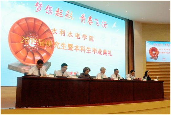 顾冲时院长在致辞中祝贺各位毕业生顺利毕业,并对大家寄予祝福和希望,希望同学们要把握水利发展形势,立足新时代,寻求新起点,思索新问题、迎接新挑战,一展河海水利人的智慧与风采!学业可以毕业,学习不可以毕业,所以要活到老学到老,青春可以毕业,梦想不可以毕业,所以要勇敢一点,时光可以毕业,同学情谊不可以毕业,所以要常联系。