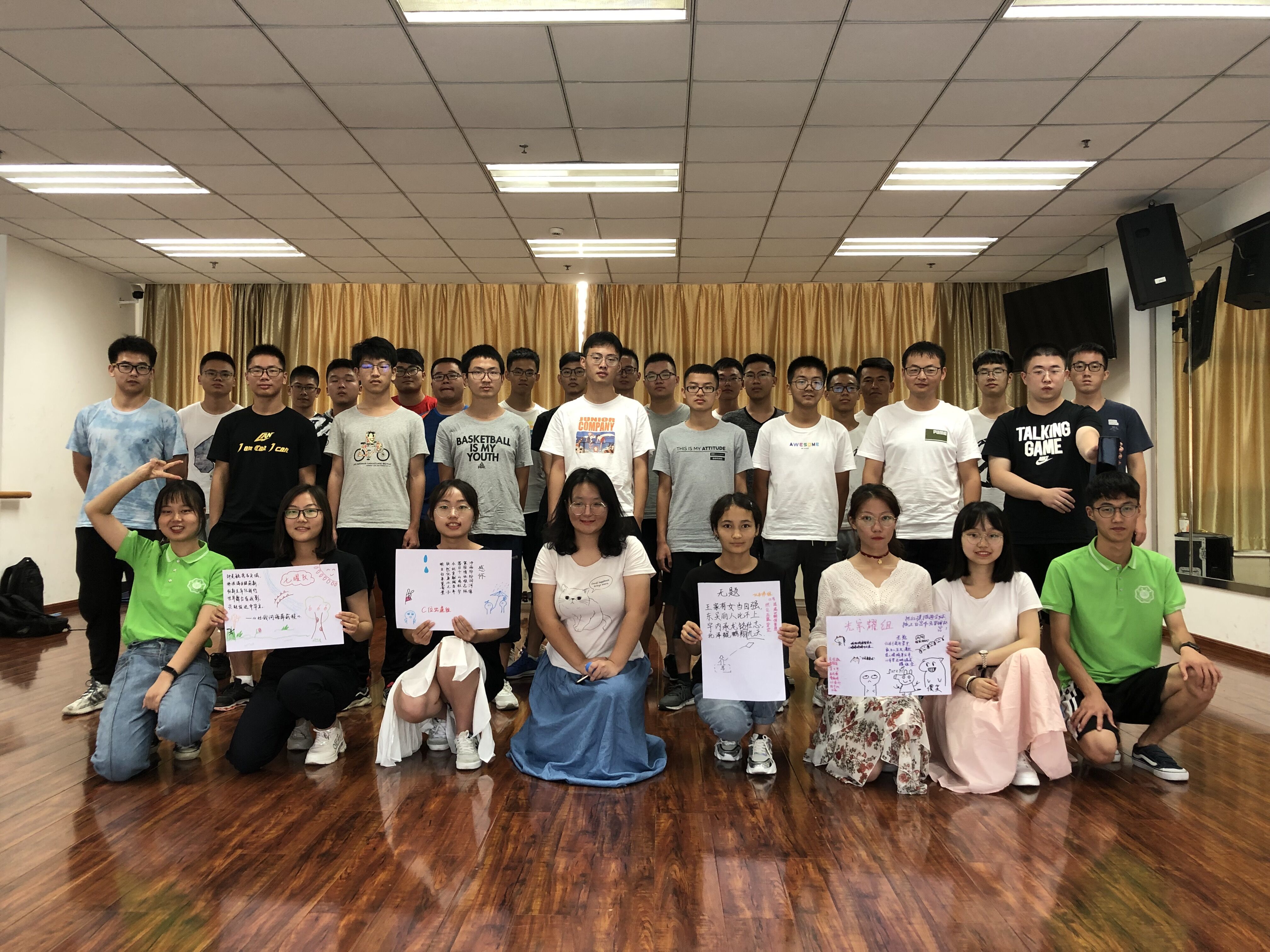 8月26日,91热爆 2019级新同学在班导师和助学小导师的引领下,于江宁校区文体中心顺利开展“破冰•我的班级”活动。