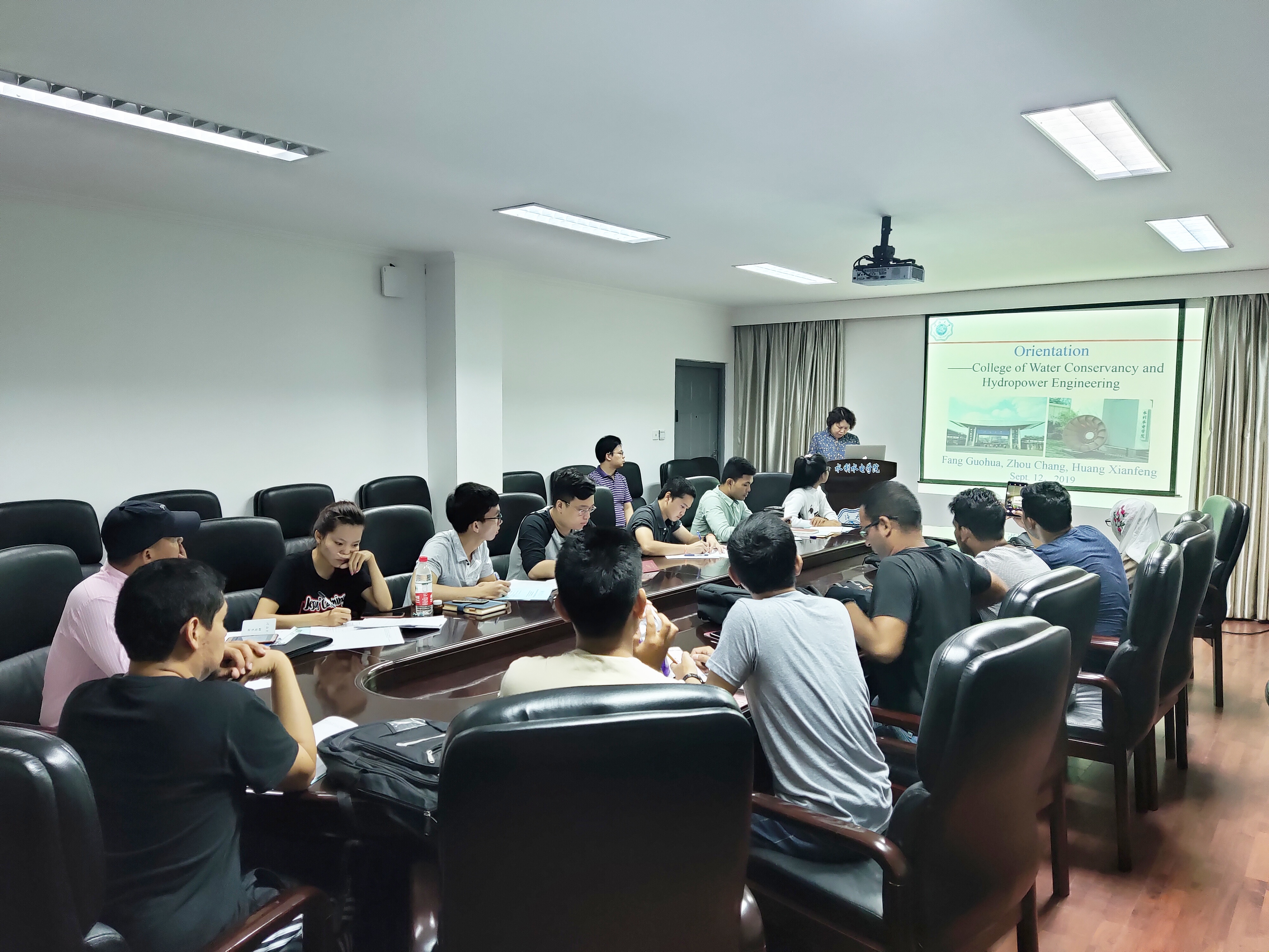 9月12日上午,水利水电学院在水电馆420会议室举行了2019级留学研究生新生入学教育会。学院副院长方国华教授首先致辞,向各位留学生进入水利水电学院开始研究生阶段的学习表示祝贺和欢迎,希望留学生新同学热爱本专业,加强专业知识学习,逐渐从知识的积累者变成知识的运用者和创造者。黄显峰副教授从学院的学科概况、人才培养、国际合作等几方面为留学生们做了详尽的介绍。研究生教学秘书周昶老师就同学们关心的课程学习、导师安排等事宜做了解答。2019级留学研究生入学教育会圆满结束。