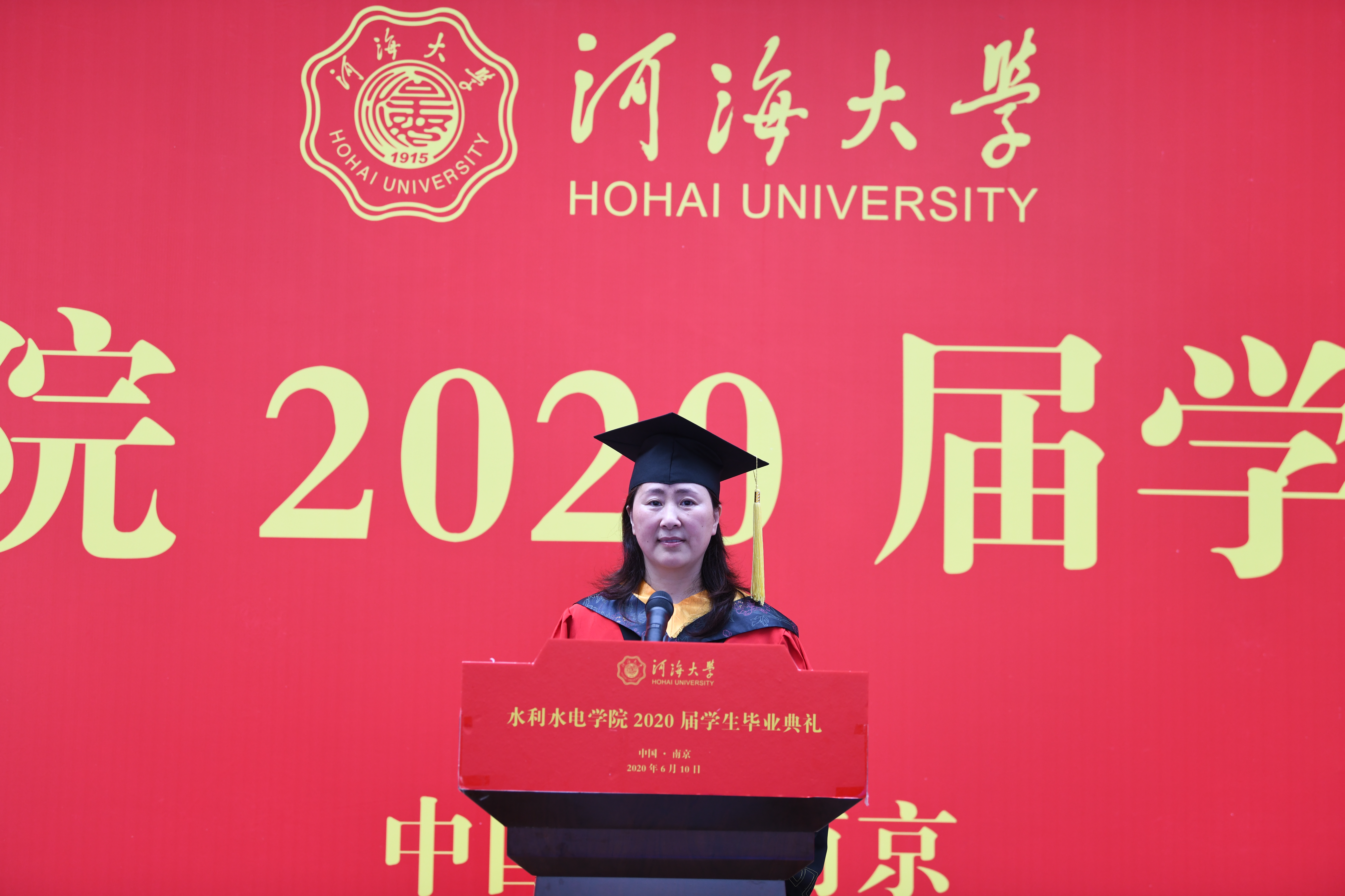 王媛院长在致辞中代表学院,向顺利完成学业的全体毕业生们表示最热烈的祝贺,向付出辛勤劳动的老师们表示最衷心的感谢。王院长回顾了同学们与学院共同成长的历程,并向全体毕业生提出了殷切期望。她希望同学们在顺境中,牢记“静水流深”的绵长,不沾沾自喜,也不妄自尊大。在逆境中,牢记“水滴石穿”的执着,不患得患失,也不妄自菲薄,自觉从水的精神内涵中汲取前进的不竭动力,做新时代合格的水利人。她希望同学们对中国的水利事业发展有全面而长远的认识,把握水利发展形势,立足新时代,寻求新起点,迎接新挑战。她强调,全体毕业生要牢记自己的国家责任和担当,牢记习近平总书记对青年的嘱托,继承和发扬五四精神,坚定理想信念,站稳人民立场,练就过硬本领,投身强国伟业。始终保持艰苦奋斗的前进姿态,同亿万人民一道,在实现中华民族伟大复兴中国梦的新长征路上奋勇搏击。王院长还转达了老院长顾冲时教授对全体毕业生的祝福,祝愿水电骄子前程似锦、一帆风顺!