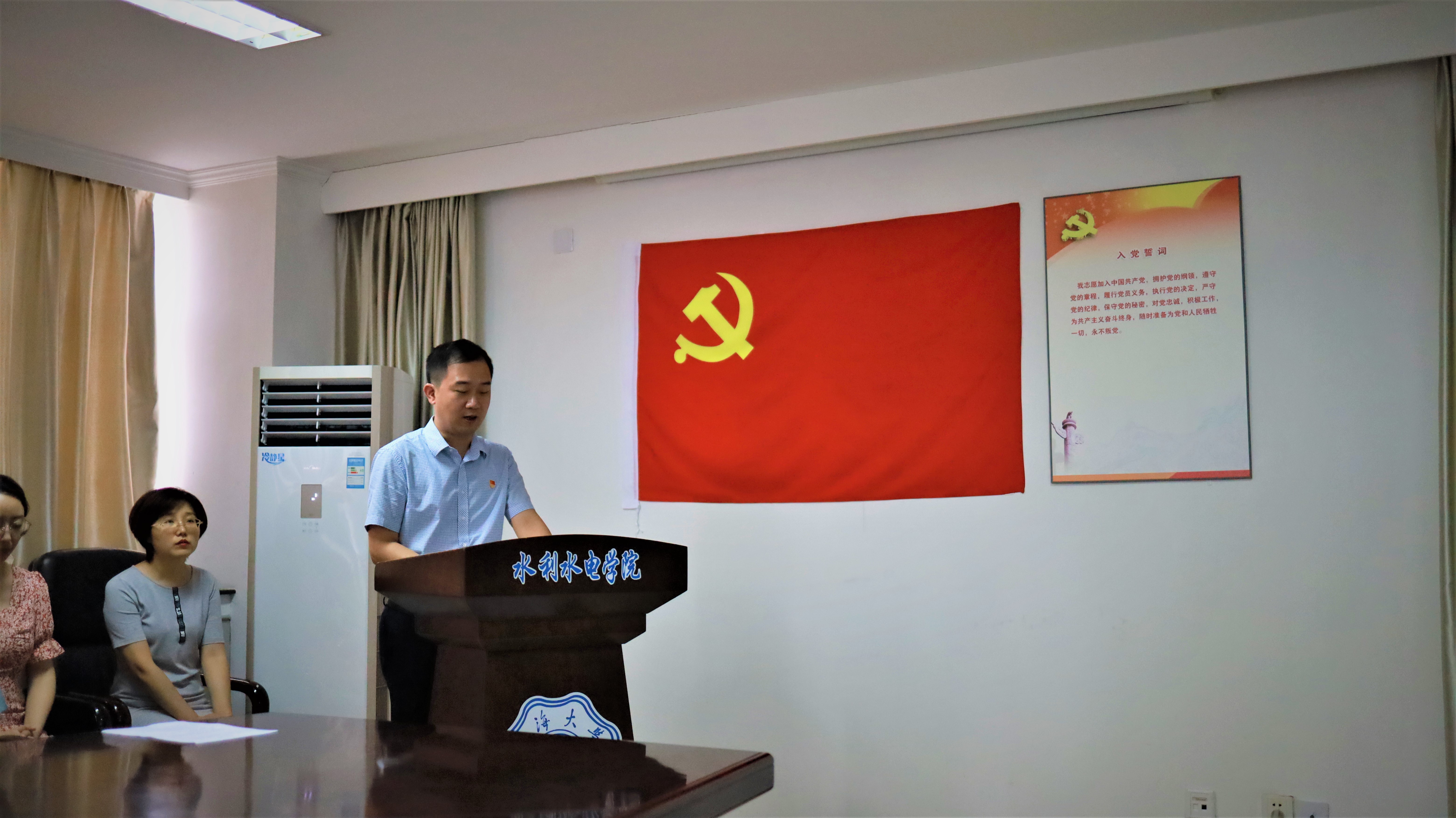 7月1日上午,水利水电学院举行“七一”入党宣誓仪式。院党委副书记王方,组织员胡瑞媛,研究生辅导员赵志涵、陈思思,本科生辅导员笪步源,和新发展的32名预备党员参加入党宣誓仪式。