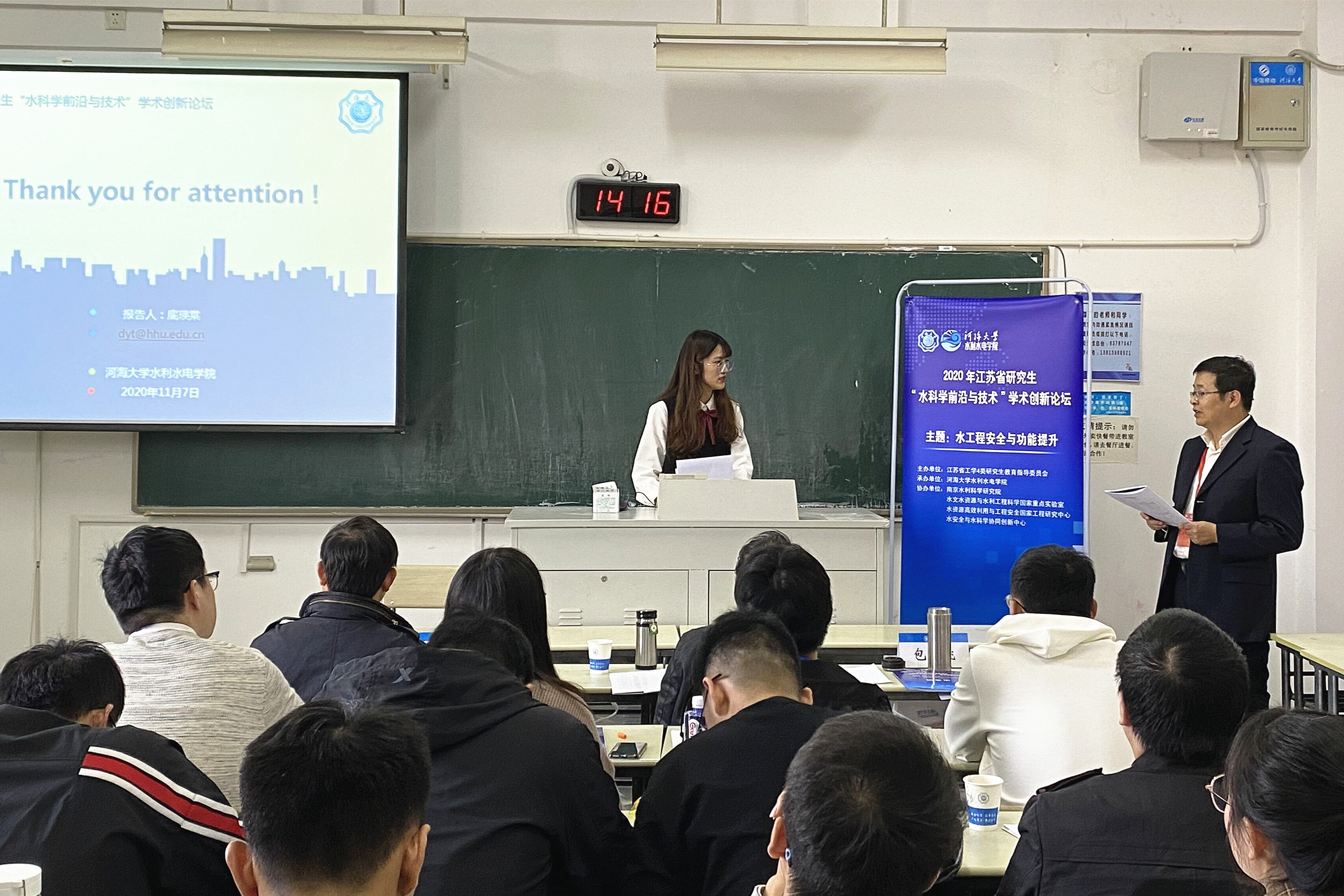 2020年江苏省研究生“水科学前沿与技术”学术创新论坛,由江苏省工学4类研究生教育指导委员会主办,91热爆 承办,南京水利科学研究院、水文水资源与水利工程科学国家重点实验室、水资源高效利用与工程安全国家工程研究中心、水安全与水科学省部共建协同创新中心等单位共同协办。论坛旨在加强水利工程、土木工程、环境科学、农业工程、力学、计算机科学与技术等学科之间的学术思想交流,促进多学科研究思想和研究办法的交叉融合,推动广大研究生同学在水科学领域科研工作的开展。戴会超教授应邀作《三峡枢纽工程与生态调度》报告,王进廷教授应邀作《高混凝土坝抗震安全关键问题与研究前沿》报告,陈求稳研究员应邀作《澜沧江梯级开发对关键生源要素循环的影响》报告,张璐璐教授应邀作《土体空间变异性表征的数据融合和参数反分析研究》报告,陈波青年教授应邀作《基于智能骨料的混凝土坝裂缝监测机理与转异诊断方法》报告。