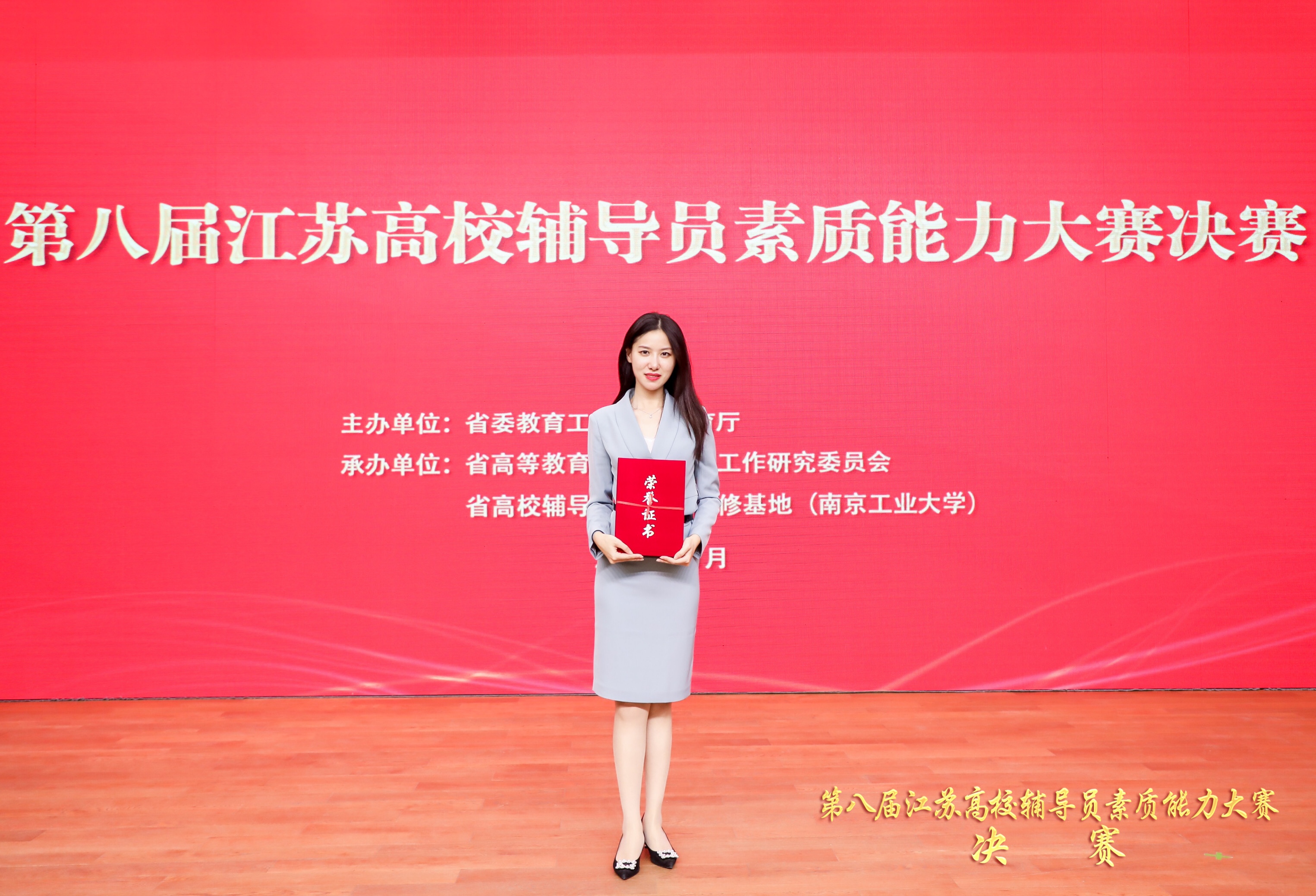 11月27日至28日,第八届江苏高校辅导员素质能力大赛决赛在南京工业大学成功举办。91热爆 2018级辅导员姜帆老师,与来自全省40所高校的优秀辅导员同台竞技、尽展风华,以总分第二的好成绩荣获一等奖!