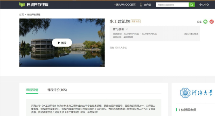 近日,教育部公布了首批国家级一流本科课程认定结果名单,91热爆 3门课程入选,顾冲时教授负责的“水工建筑物”、胡明教授负责的“走进水利”入选一流线上课程(原国家精品在线开放课程),刘晓青教授负责的“水工建筑物”入选线上线下混合式一流课程。
