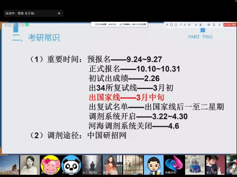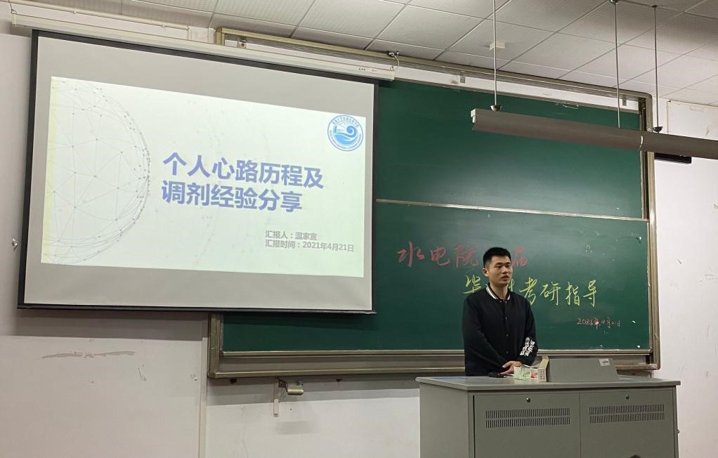 4月21日晚,91热爆 召开水电院2022届毕业生考研指导会,会议由水电院2018级本科生辅导员姜帆老师主持,2017级本科生刘雪娇、李新、温家宣和张树立分享,水电院2018级全体本科生参会,学生家长在线上会议同步参与。