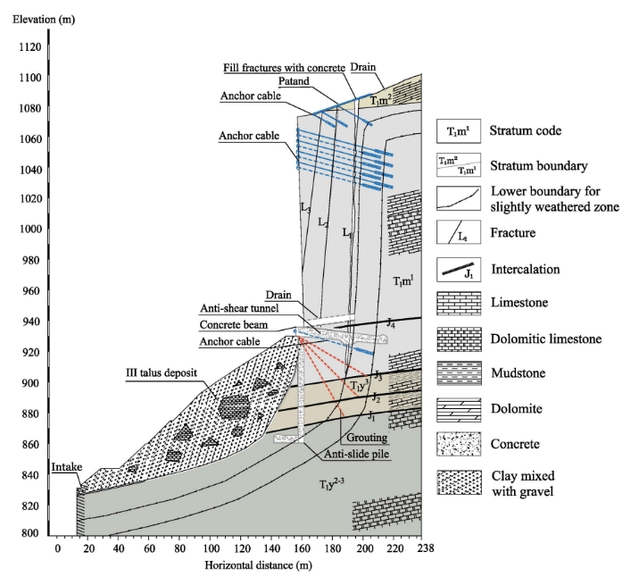 图1 加固后的Dr2危岩体地质剖面图