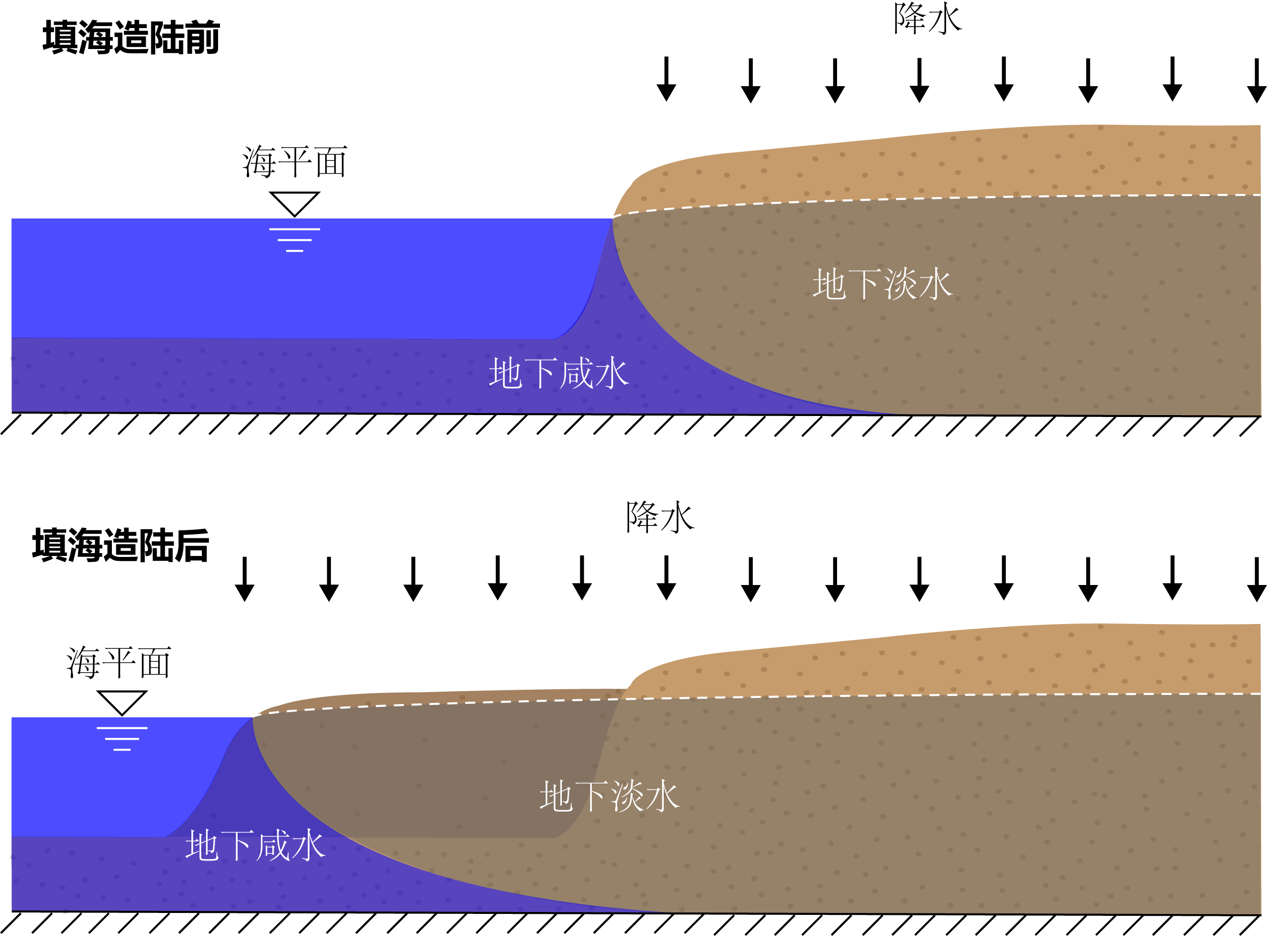 大规模的填海造陆新增了宝贵的土地,经济效益显著,但对海岸带系统产生巨大影响。目前,对填海造陆影响的研究主要集中在填海后海域水动力条件的变化、泥沙沉积分布以及滨海生态环境的变化等,而对填海后海水入侵与地下水动力系统影响的机理尚缺乏充分认识。张嘉等考虑了填海造陆区域底部基础的渗透性,构建了更符合实际情况的滨海含水层概念模型,研究了不同填海范围及不同填海材料对于海水入侵及地下水水位的影响,并且推导了能够快速定量填海前后海水入侵及地下水水位的解析表达式。研究成果可为评估与预测填海造陆对地下水系统的影响提供重要的理论基础和科学依据,对滨海含水层的保护具有重要的学术价值和实际应用意义。