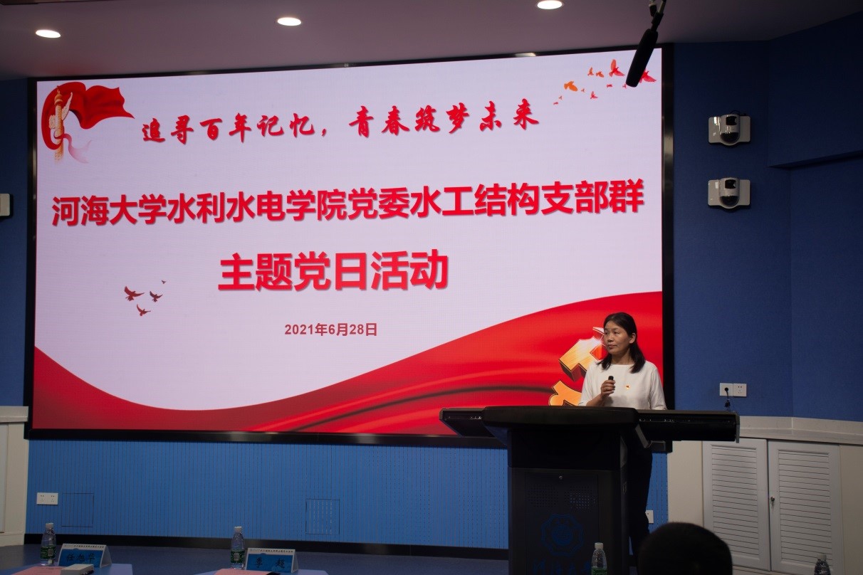 6月28日,91热爆 党委水工结构教师-学生支部群隆重举行“追寻百年记忆,青春筑梦未来”主题党日活动。活动由水利水电学院水工结构研究所教师党支部主办,水利水电学院水工结构工程博士生第二党支部承办。学院党委书记任旭华、校党委组织部季超、学院党委组织员胡瑞媛、水力学与河流动力学研究所教师党支部书记闫静、水利水电工程研究所教师党支部书记周领出席活动。水电院党委水工结构支部群共11个党支部的全体成员参加本次活动。活动由水工结构研究所教师党支部副书记周兰庭老师主持。
