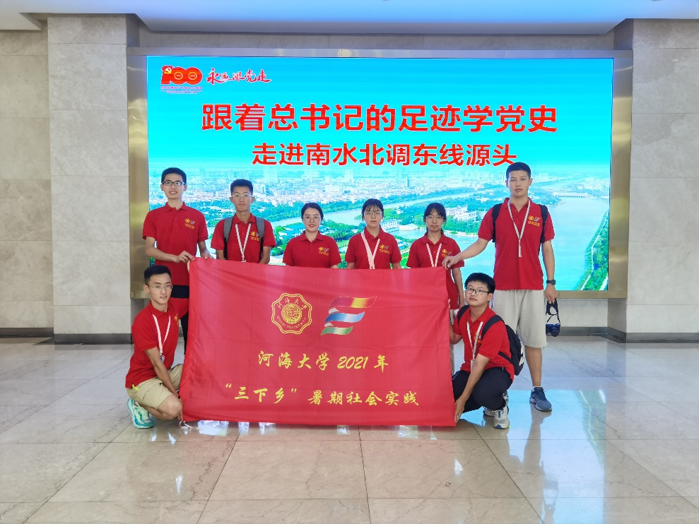 7月13日—14日,实践团来到江都水利枢纽和南水北调宝应泵站进行参观学习,深入基层一线,了解南水北调东线一期工程实地概况,对工作人员进行访谈。
