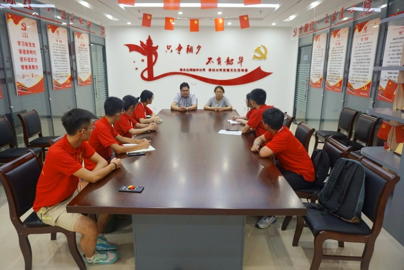 在南水北调东线江苏水源公司扬州分公司,公司总经理介绍了南水北调东线工程概况,了解到江苏境内的南水北调东线工程是在以现有京杭大运河为输水干线的江水北调工程基础上扩大规模、向北延伸建成的,深入贯彻习近平生态文明思想,把水环境治理作为一项民生实事工程牢牢抓在手上,实现了生态效益、经济效益、社会效益的相互促进。座谈会上,双方还就企业发展史、任务范畴以及公司对人才的需求进行详细的交流。同时工作人员还寄语团队成员,水利工程是一个民生工程,是为人民谋福祉,作为一名水利人,要有归属感,有行业情怀,不怕困难,甘于奉献。