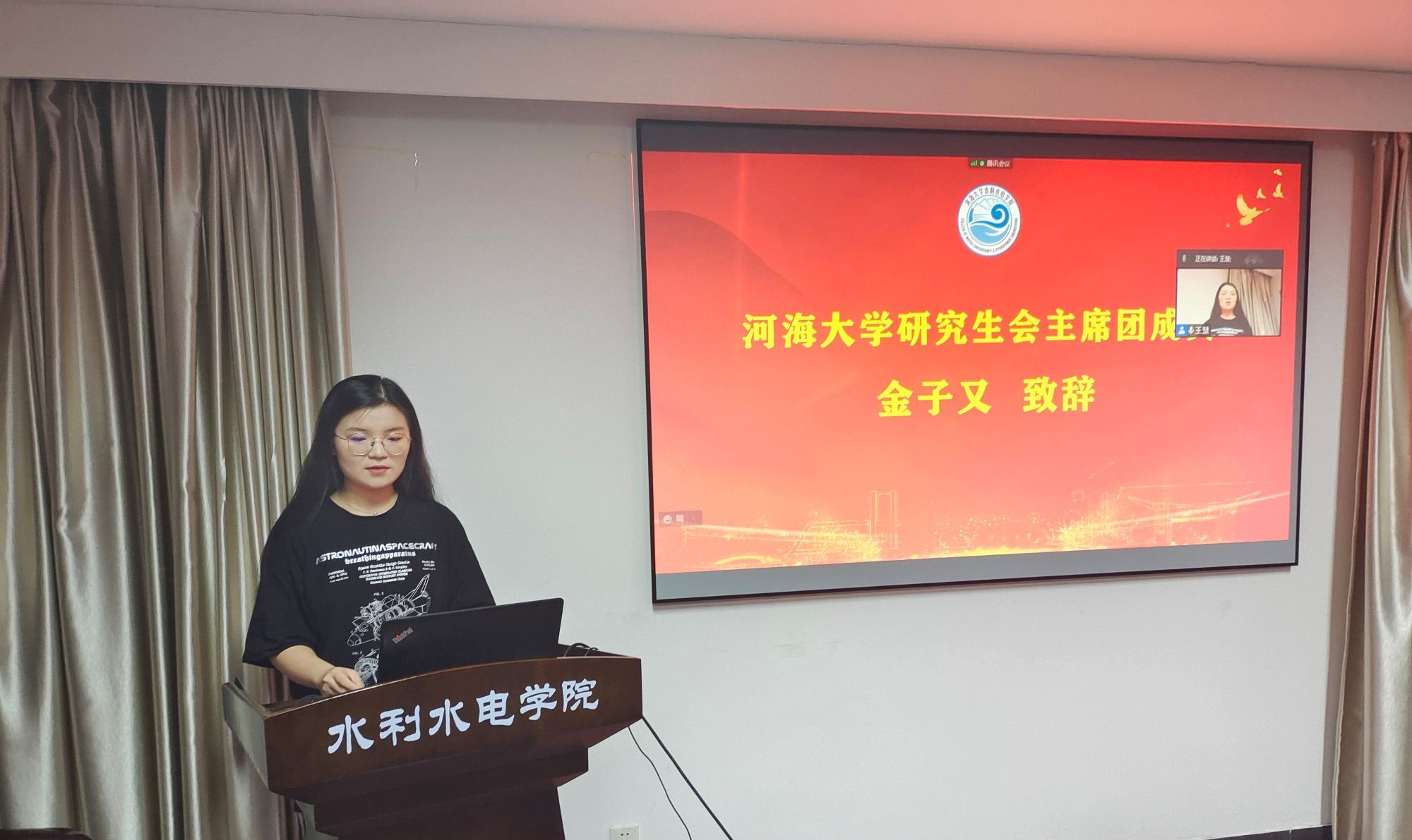 活动伊始,校研究生会主席团成员金子又致辞。金子又首先对骨干培训班的召开表示热烈祝贺,并表达对水电院学生组织未来发展的期望。金子又指出学生骨干应当以学为主、兼学多样,要珍惜进入学生组织的机会,在服务广大同学的过程中提升自身综合素养、增强持续发展能力,努力成为高素质、高能力、高水平的水利人才。