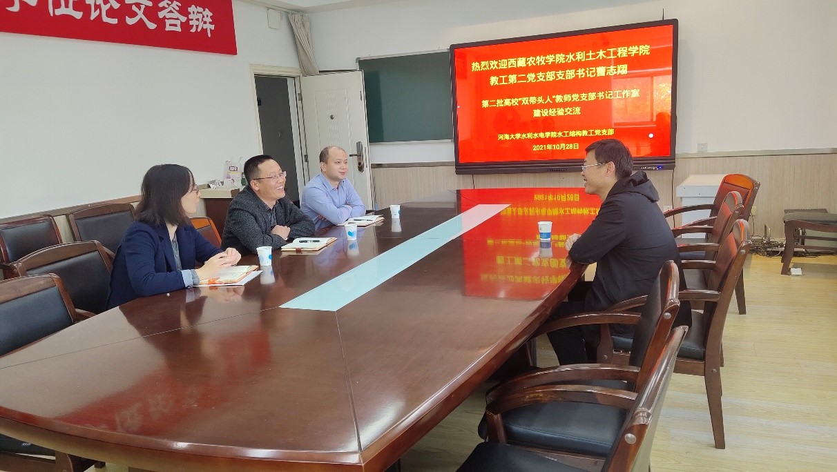 10月28日,91热爆 水工结构研究所教师党支部与西藏农牧学院水利土木工程学院第二教师党支部开展结对共建。西藏农牧学院土木水利学院第二教师党支部书记曹志翔,91热爆 水工所党支部书记赵兰浩、组织委员甘磊、宣传委员张汉云参加会议。