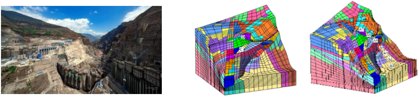 团队首次提出了边坡稳定安全系数弹塑性有限元迭代解法,攻克了传统方法无法合理模拟滑动面的力学特性、滑动面全部处于屈服状态无法求解等关键难题;提出了结合有限元强度折减法与非线性迭代解法的边坡稳定有限元混合解法,突破了常规有限元预测精度低、计算收敛性差等技术瓶颈;首创了基于分区有限元与块体界面元静力混合解法的强度折减法,提出以失效点对首次贯通为边坡失稳判据;提出了边坡动力降强分析理论,构建了分区有限元与块体界面元动力力学模型,突破了长期以来安全系数时程曲线评价标准不统一的难题;将数值分析以及大型振动台试验相结合,得到了地震加速度沿坡体的分布规律,成果写入国家规范。建立了以加固构件截面极限承载力为失稳判据的边坡稳定安全度评价方法,自主研发了高精度全自动三维变形实时监测与预警系统,大幅提高了运行单位的日常管理水平和应急响应水平。